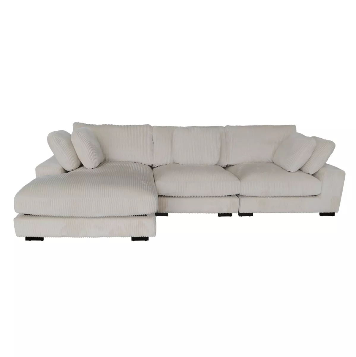Ο CRANFIELD είναι ένας μεγάλος καναπές σε διαμόρφωση αριστερής γωνίας (όπως τον κοιτάς), και με χαμηλά και φαρδιά μαύρα πόδια. Παραδίδεται με 5 συνοδευτικά μαξιλαράκια και είναι επενδυμένος με όμορφο ριγέ (κοτλέ) ύφασμα σε ΜΠΕΖ χρώμα. Αποτελεί ιδανική επιλογή για όσους αναζητούν έναν μεγάλο και ποιοτικό καναπέ!