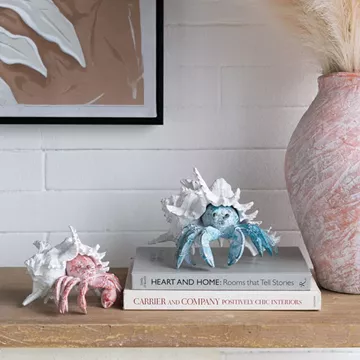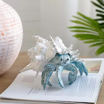 Μπλε Επιτραπέζιο Διακοσμητικό Καβούρι σε Λευκό Κοχύλι από Ρητίνη