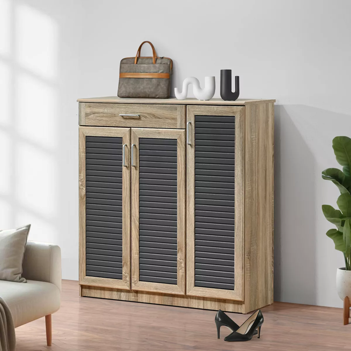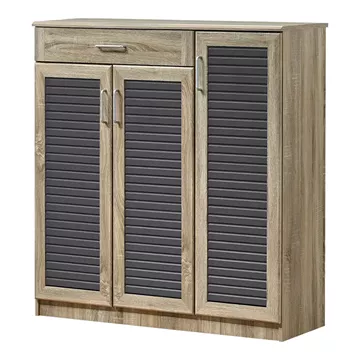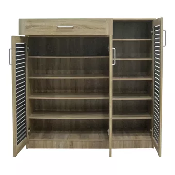 - Το διπλό κλειστό ντουλάπι περιλαμβάνει 4 ράφια και το μονό 5, ενώ το συρόμενο συρτάρι στην κορυφή μπορεί να φανεί πολύ εύχρηστο στο χώρο υποδοχής του σπιτιού.