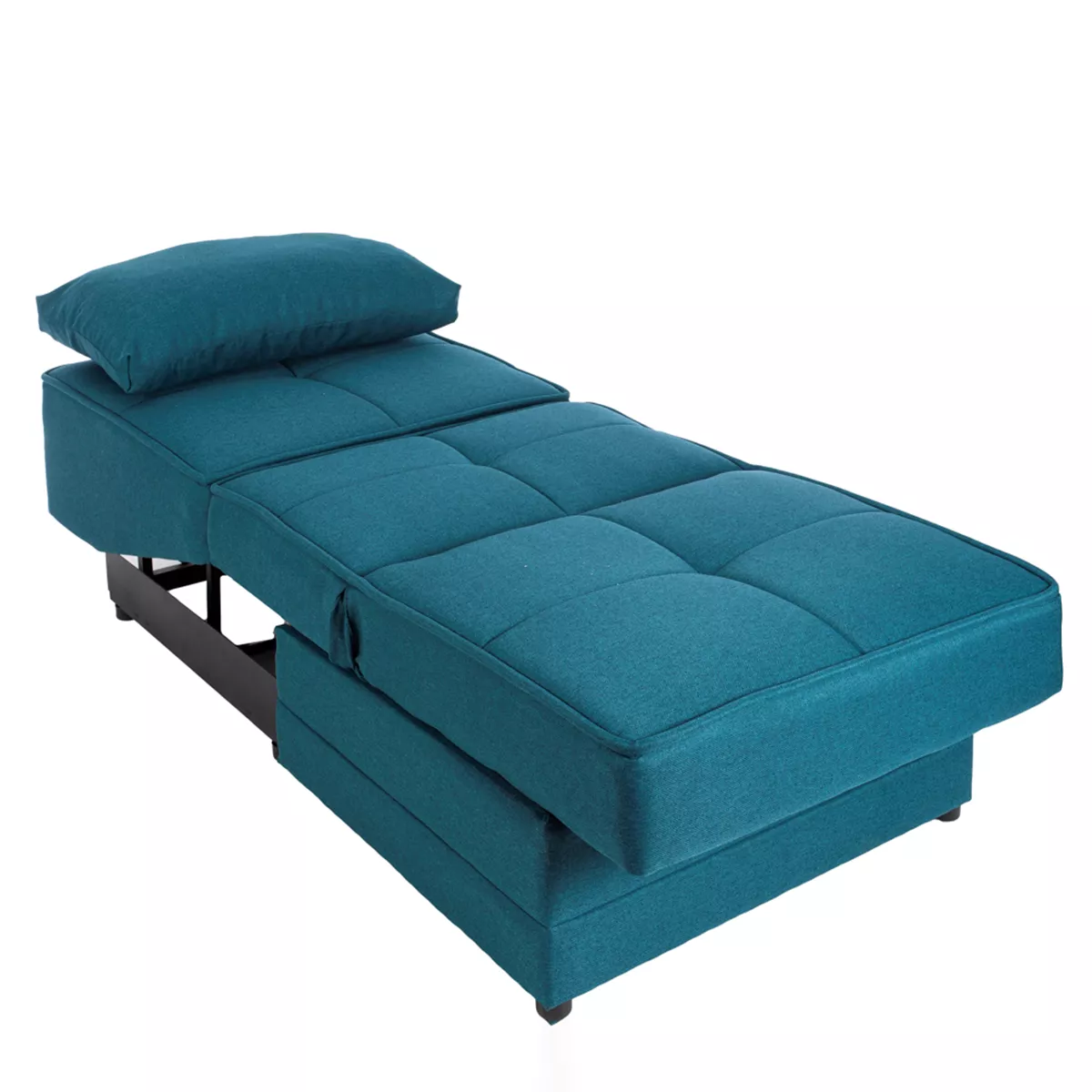 Υφασμάτινη Πετρόλ Πολυθρόνα Κρεβάτι με Αποθηκευτικό Χώρο
