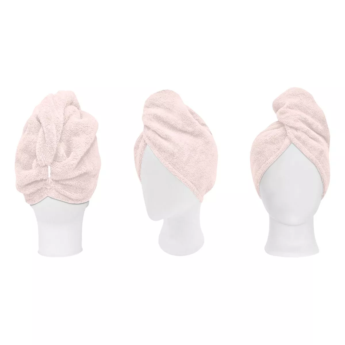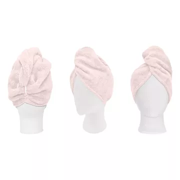 Το turban σχήμα της πετσέτας είναι σχεδιασμένο για να εφαρμόζει άνετα γύρω από το κεφάλι και να στεγνώνει τα μαλλιά σας με ασφάλεια και άνεση. Η ειδική του κατασκευή βοηθά στην απορρόφηση της υγρασίας από τα μαλλιά, ενώ ταυτόχρονα παρέχει ελευθερία κινήσεων χωρίς το άγχος της πτώσης.