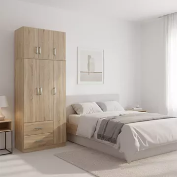 Μια λειτουργική και κομψή επιλογή για την αποθήκευση και οργάνωση των ρούχων σας είναι η ντουλάπα ρούχων Lego. Διαθέτει ράγα κρέμασης ρούχων, που σας επιτρέπει να οργανώσετε και να κρεμάσετε τα ρούχα σας, ενώ παράλληλα περιλαμβάνει δύο συρτάρια που παρέχουν επιπλέον αποθηκευτικό χώρο για τα προσωπικά σας αντικείμενα. Το oak της χρώμα είναι κλασικό και ευπροσάρμοστο σε διάφορα στυλ διακόσμησης.