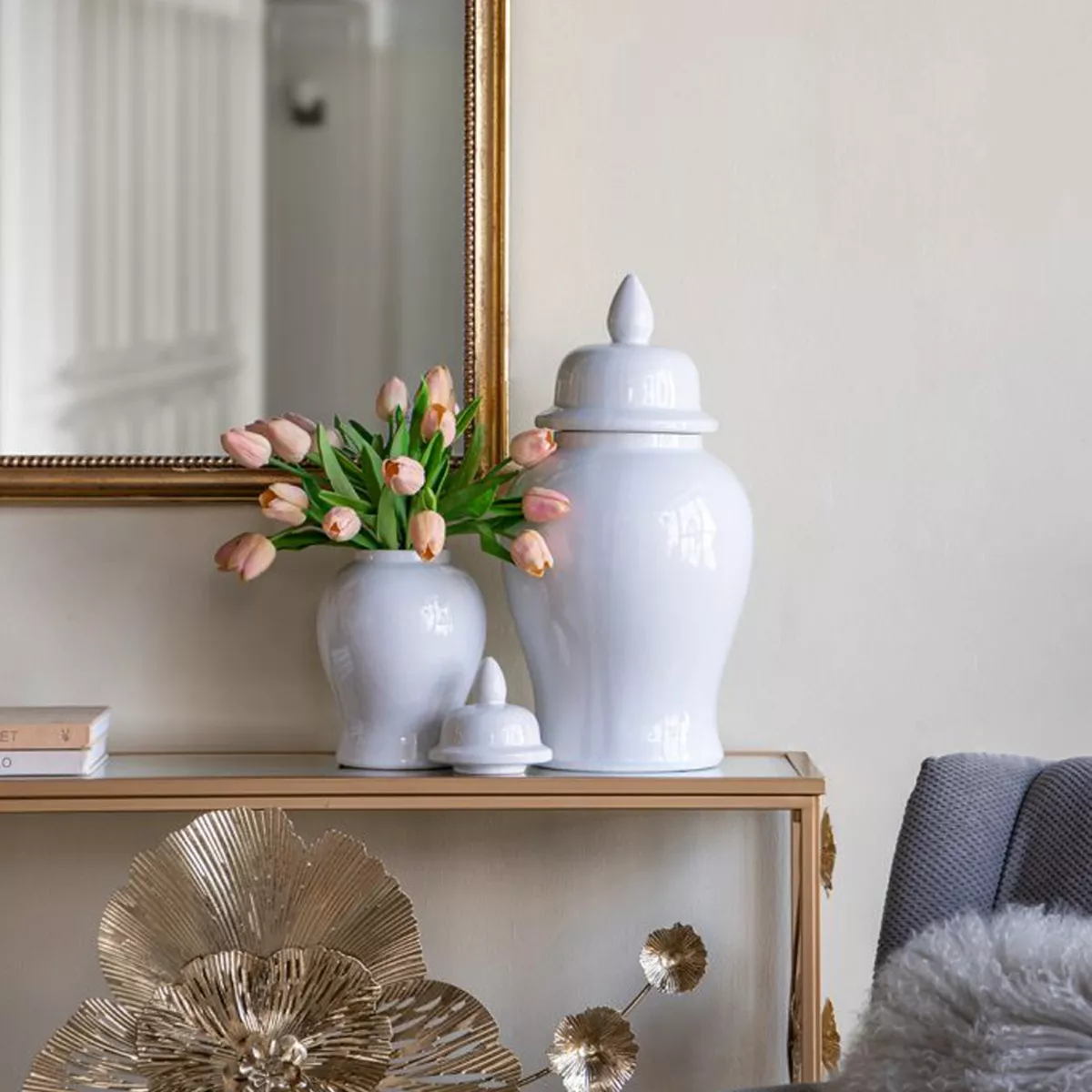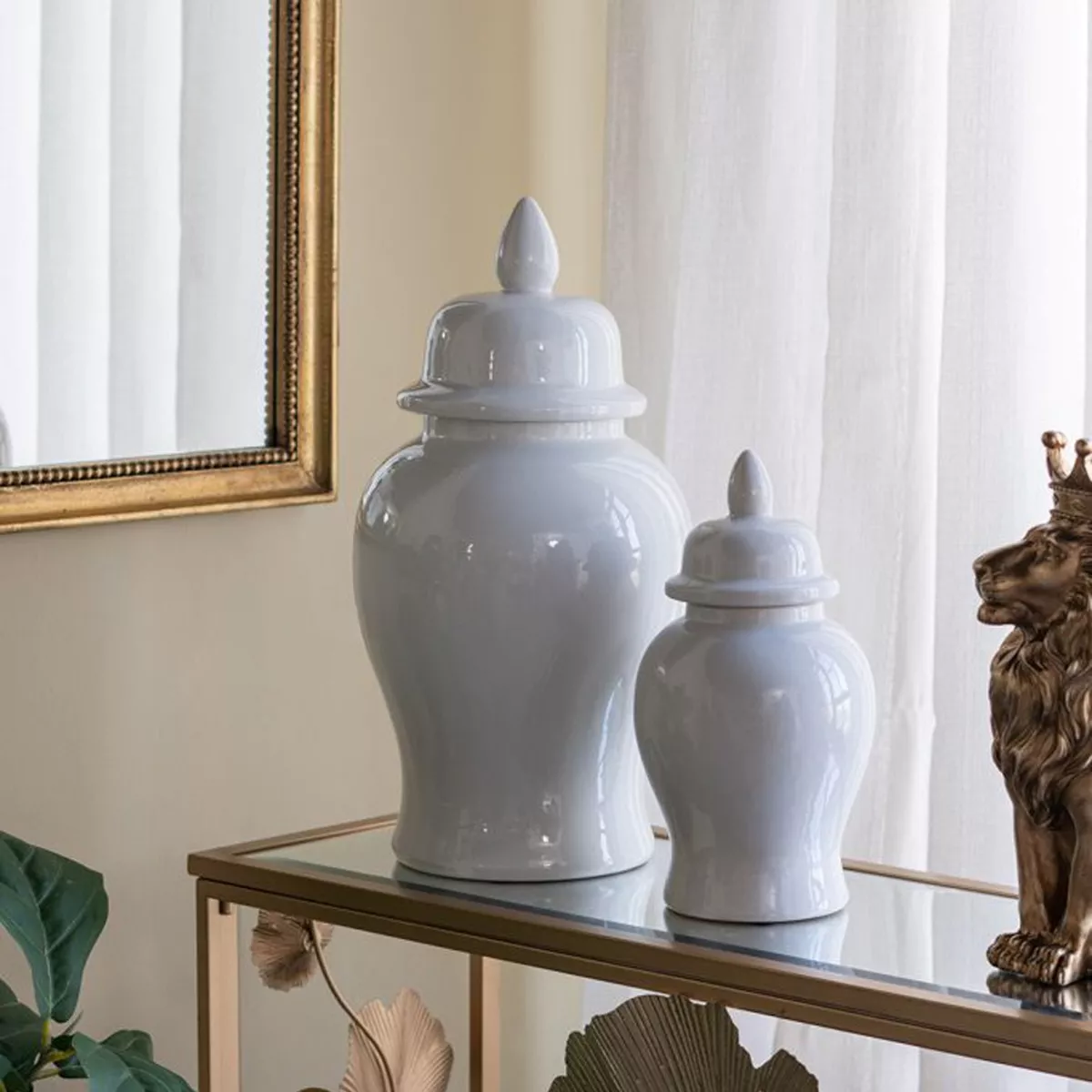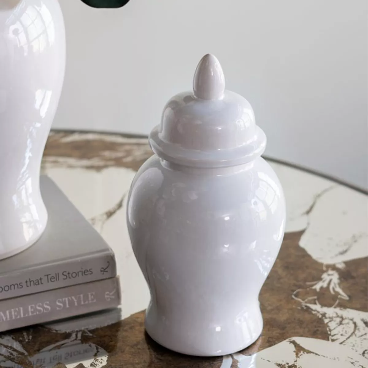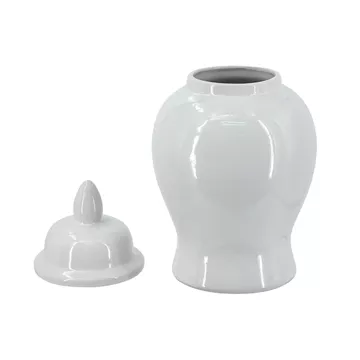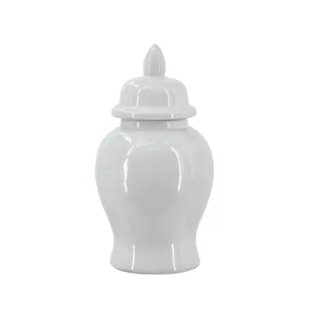 Λευκό Κεραμικό Διακοσμητικό Δοχείο Βάζο με Καπάκι