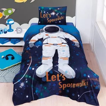 Παπλωματοθήκη μονή Spacewalk. Το σετ περιλαμβάνει 1 τεμάχιο παπλωματοθήκη σε διάσταση 170x240 και 1 τεμάχιο μαξιλαροθήκη σε διάσταση 50x70 .Η ποιότητά του είναι cotton 100%