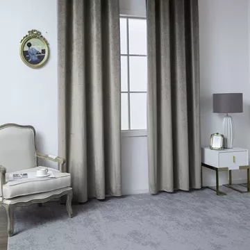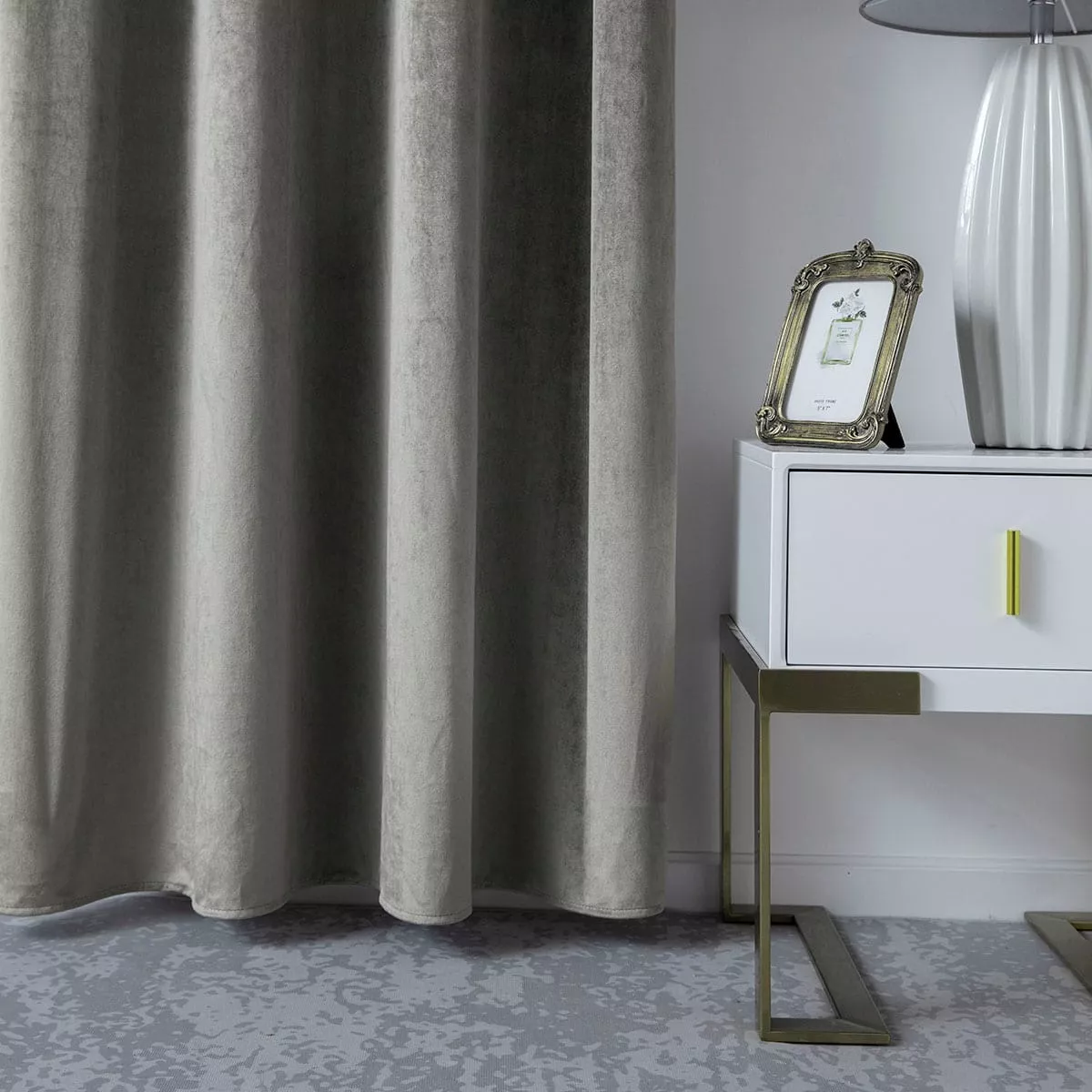 Κουρτίνα εσωτερικού χώρου, μονόχρωμη σε ασημί απόχρωση. Κατασκευασμένη από 100% polyester και ενσωματωμένα τρουκς για εύκολη τοποθέτηση. Το ύφασμα είναι velvet σκίασης. Διακοσμήστε την σε όποιο χώρο του σπιτιού σας επιθυμείτε και δημιουργήστε ένα ξεχωριστό στυλ.