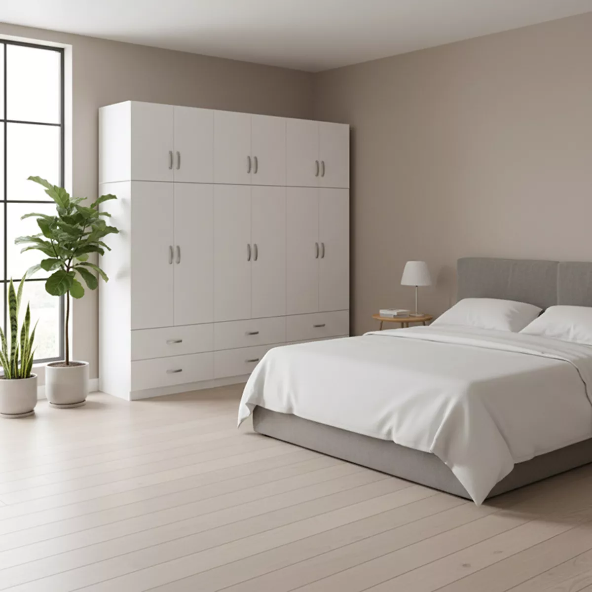 - Μοντέρνα Αισθητική: Καθαρό, λιτό design με ομαλές επιφάνειες και διακριτικά μεταλλικά χερούλια που ταιριάζει αρμονικά σε κάθε υπνοδωμάτιο ή χώρο φιλοξενίας.