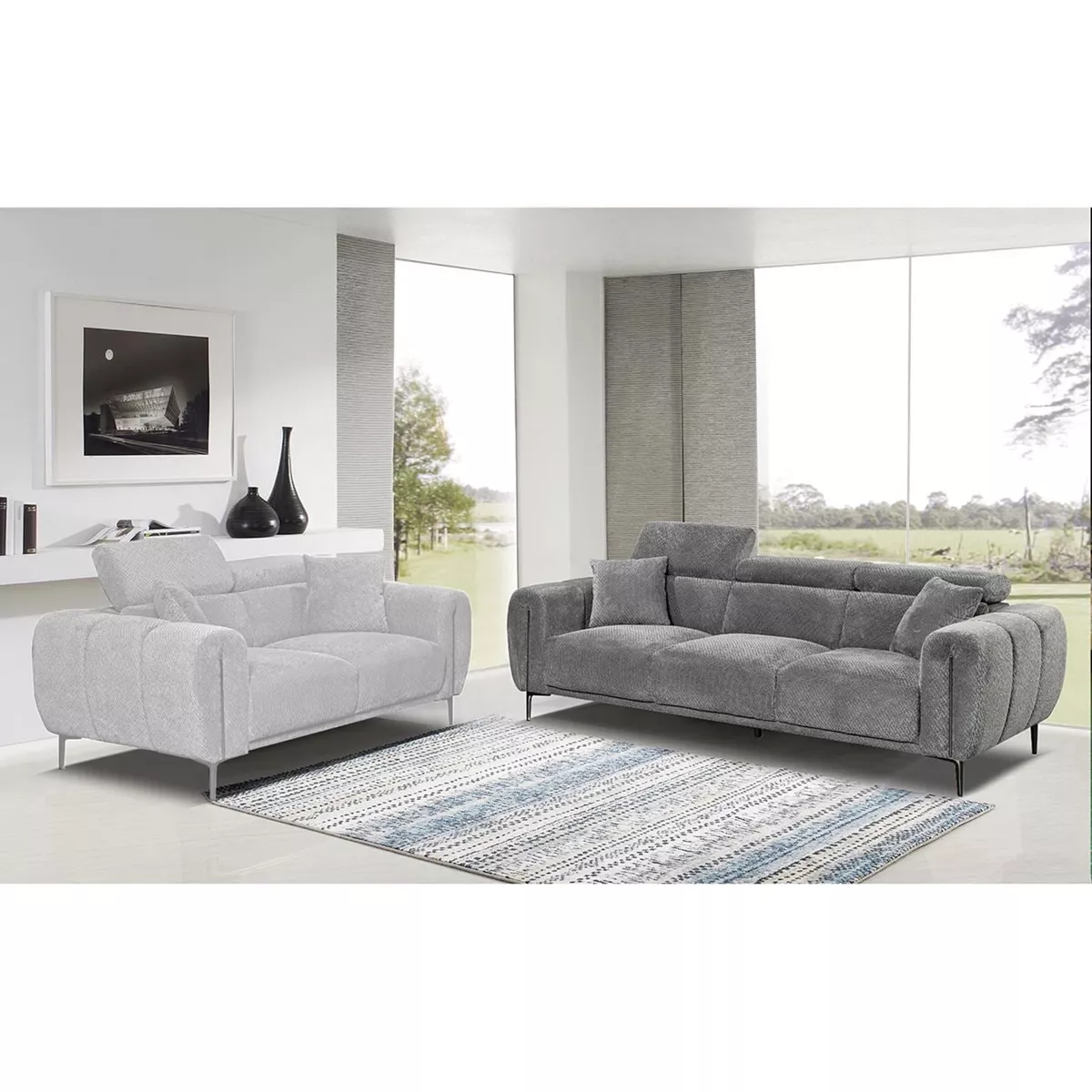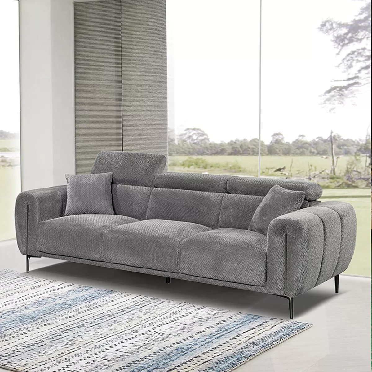 SEVILLE Kαναπές 3Θέσιος Σαλονιού - Καθιστικού, Teddy Ύφασμα Σκούρο Γκρι