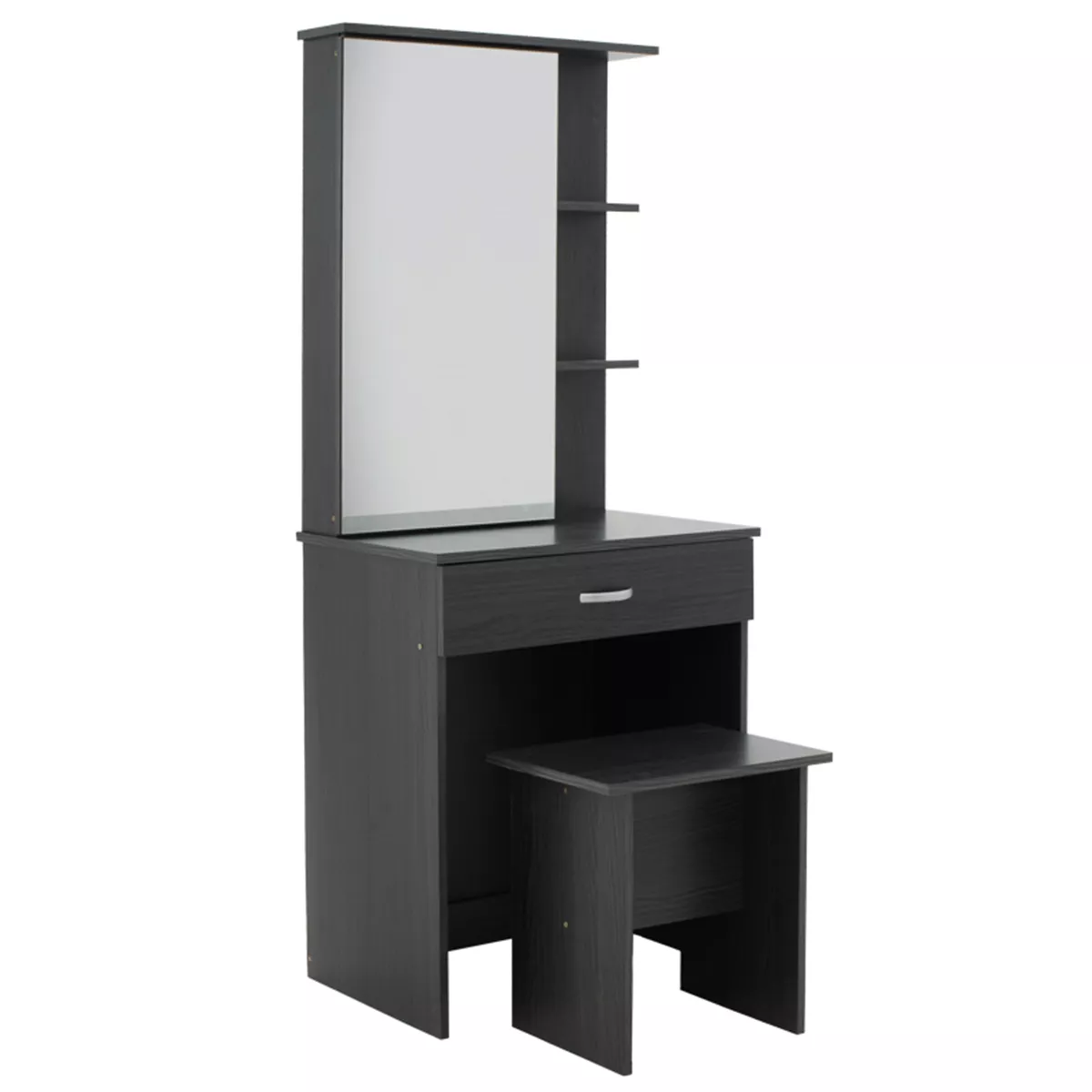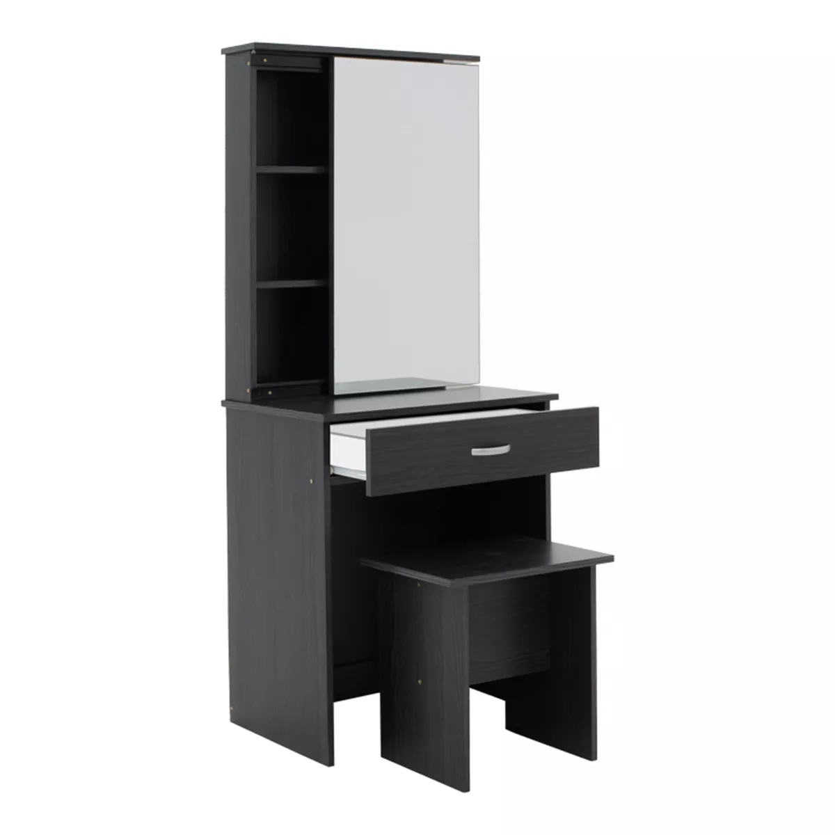 Τουαλέτα κρεβατοκάμαρας Zelia pakoworld με καθρέπτη και σκαμπό χρώμα wenge eo 60x40.5x151εκ