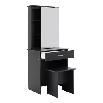 Η τουαλέτα κρεβατοκάμαρας Zelia είναι μια κομψή και πρακτική προσθήκη στον χώρο σας. Διαθέτει συρόμενο καθρέπτη με αποθηκευτικό χώρο από πίσω, όπου μπορείτε να τοποθετήσετε διάφορα αντικείμενα όπως κοσμήματα, αρώματα και άλλα προσωπικά αξεσουάρ. Τα ραφάκια στο πλάι της κονσόλας καθώς και ένα συρτάρι που διαθέτει σας προσθέτουν επιπλέον αποθηκευτικό χώρο και σας επιτρέπουν να αποθηκεύσετε προσωπικά αντικείμενα με ασφάλεια και οργάνωση. Το συμπεριλαμβανόμενο σκαμπό σας παρέχει μια άνετη και λειτουργική θέση για να κάθεστε κατά την προετοιμασία σας. Ανανεώστε την αισθητική και την οργάνωση του χώρου σας με αυτήν την κομψή και πρακτική κονσόλα.