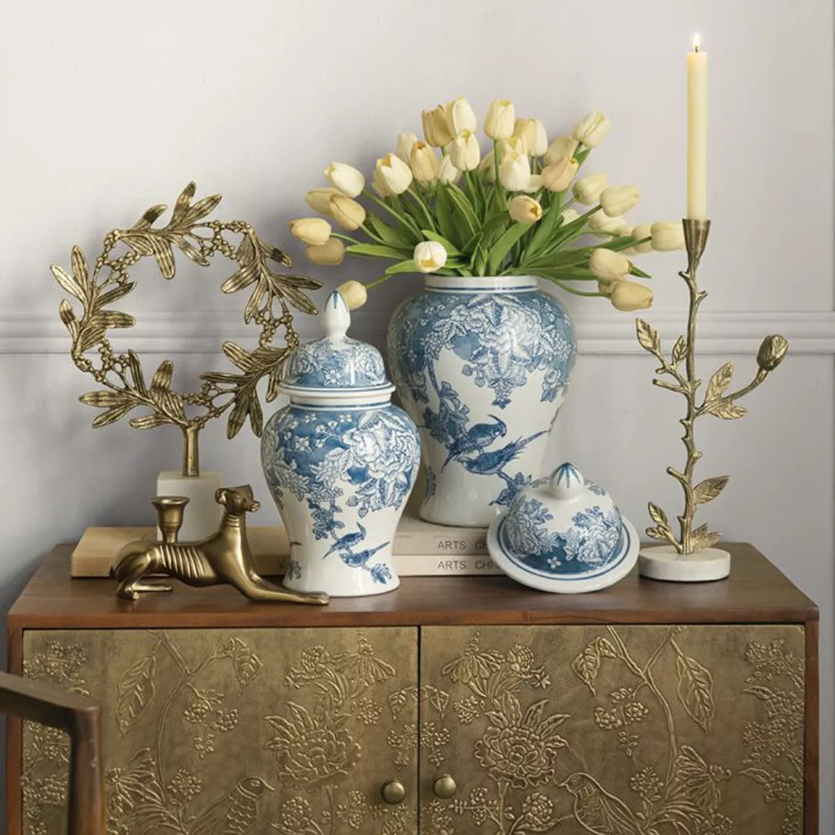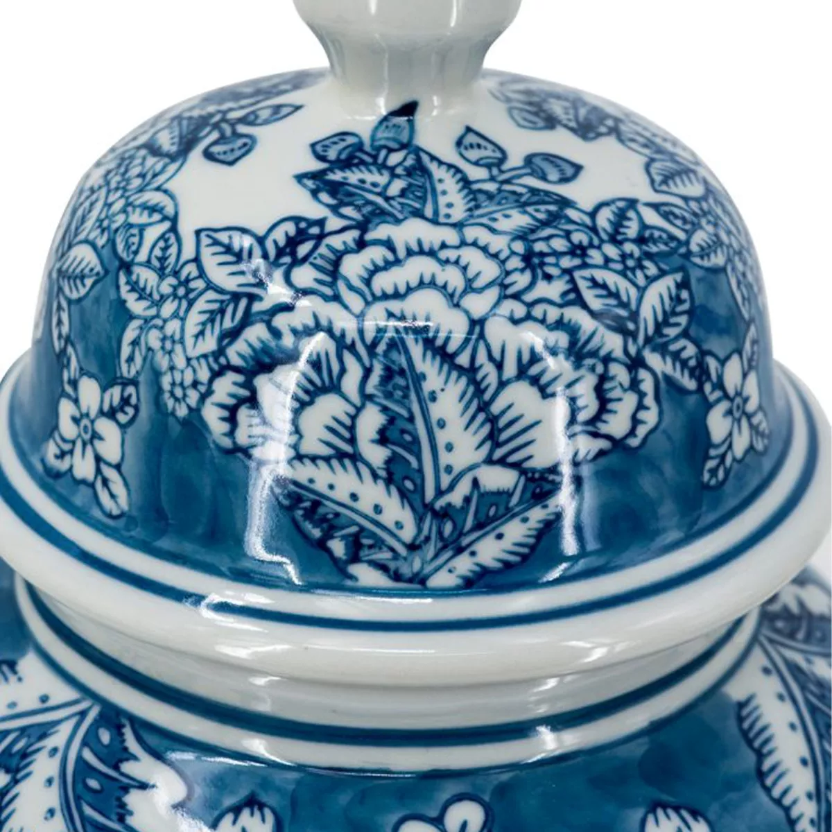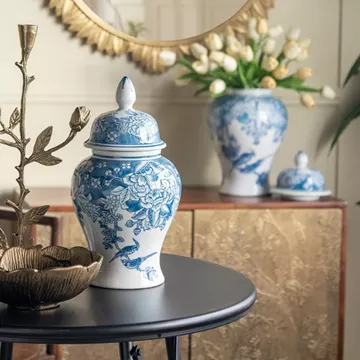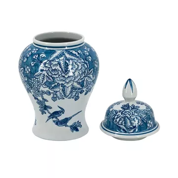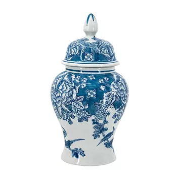Διακοσμητικό Δοχείο Βάζο με Καπάκι Πορσελάνης σε Άσπρο με Μπλε