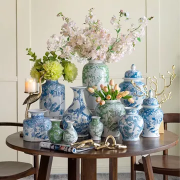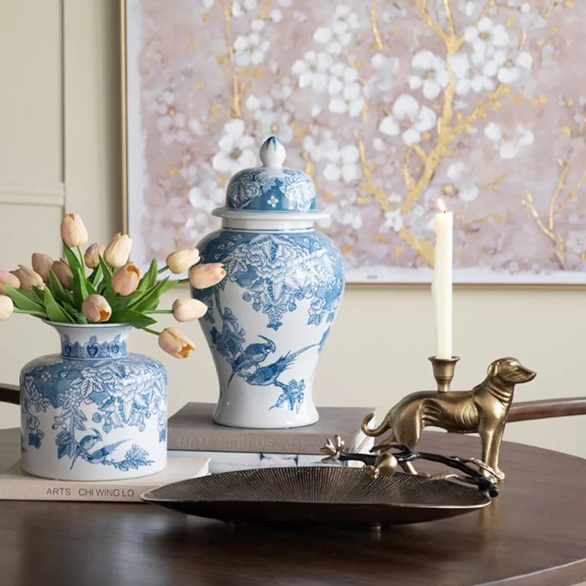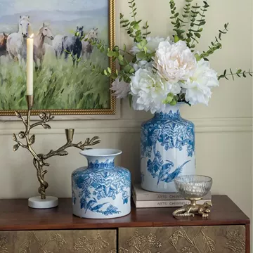 Διακοσμητικό Βάζο Πορσελάνης σε Άσπρο με Μπλε