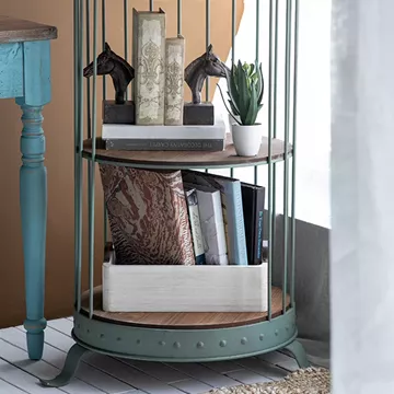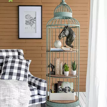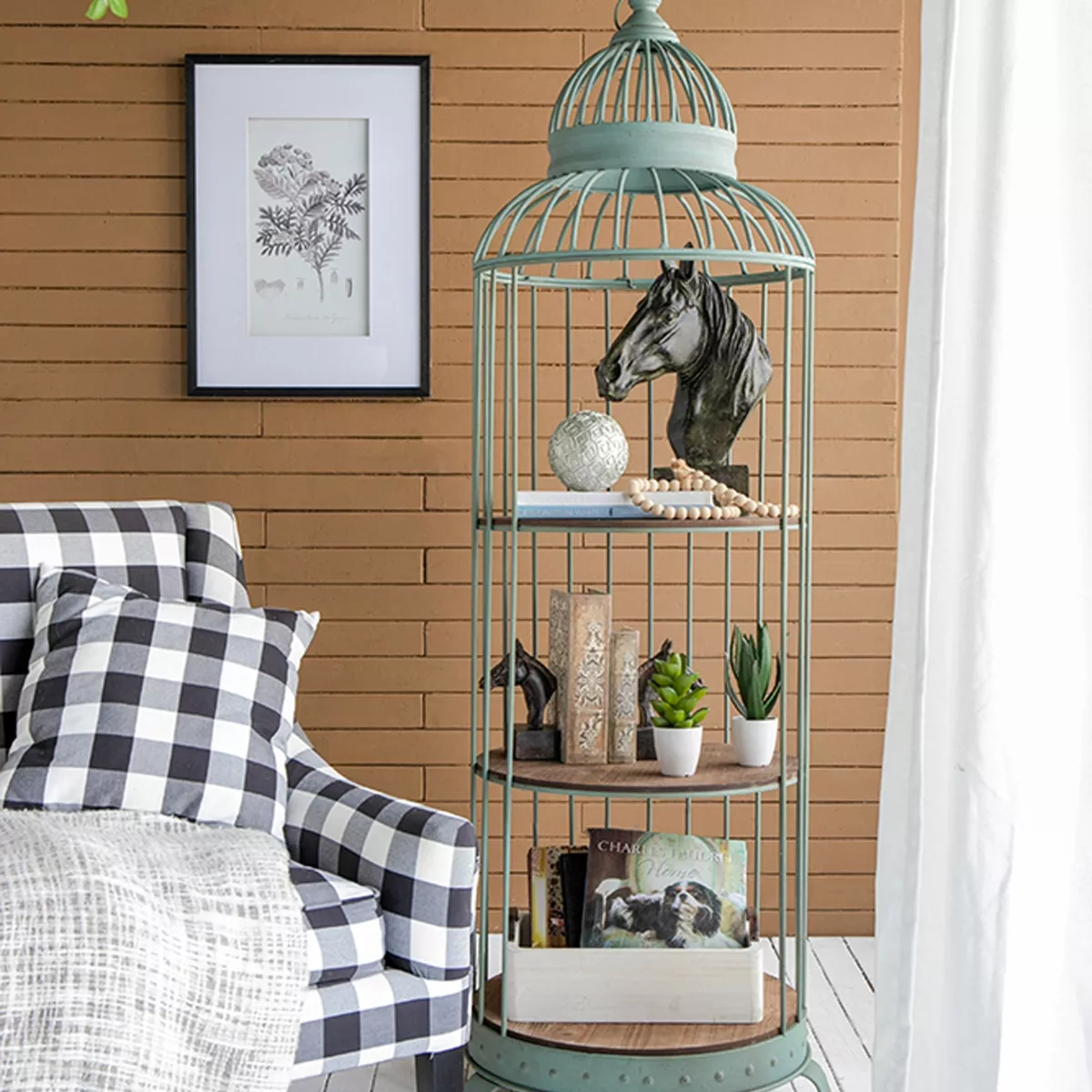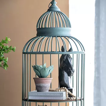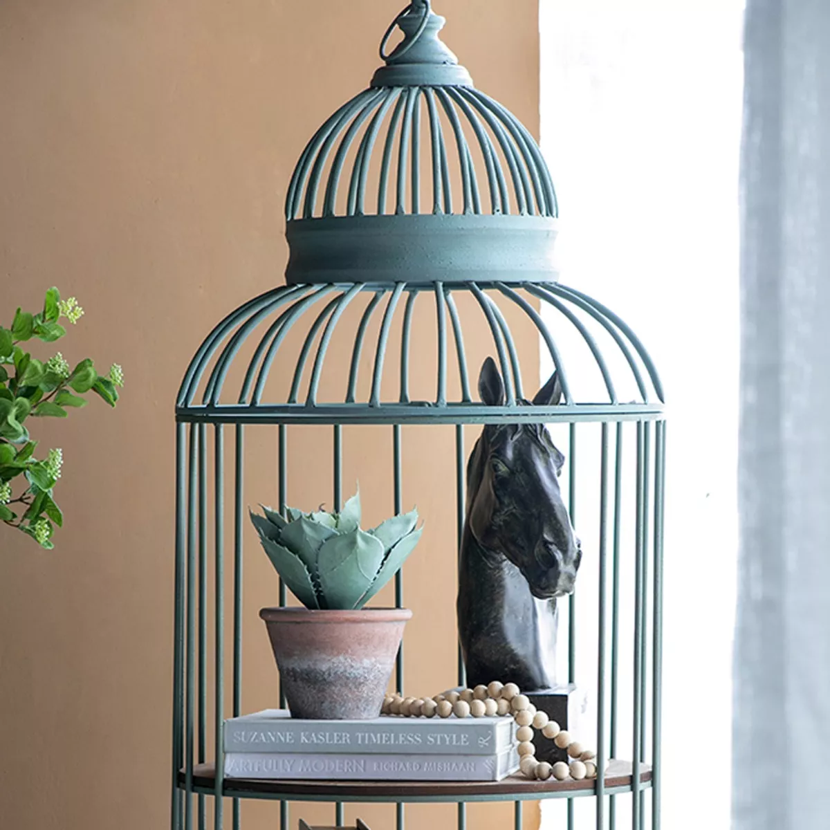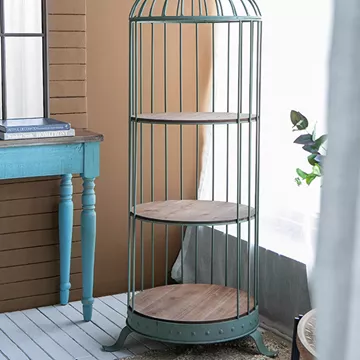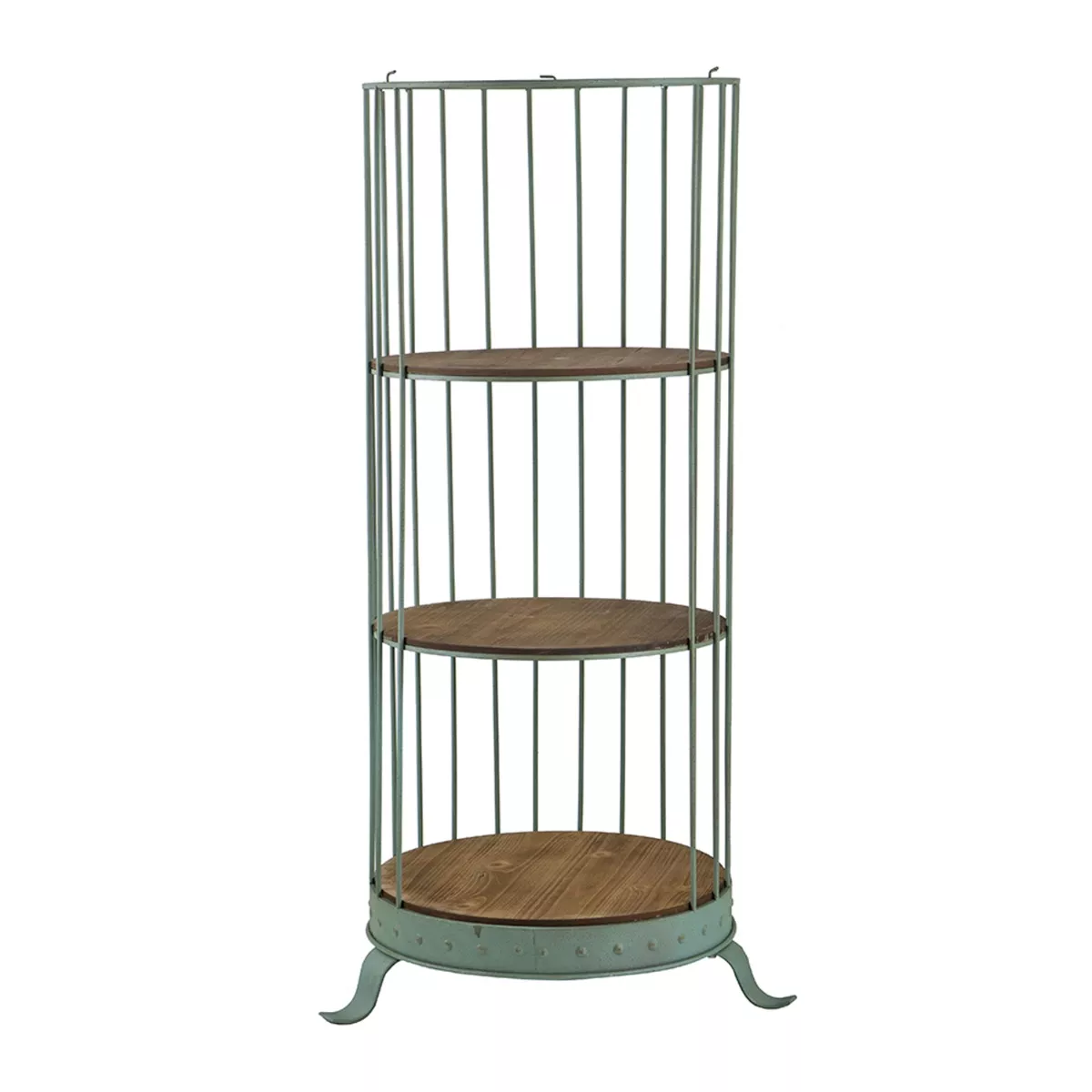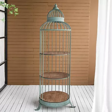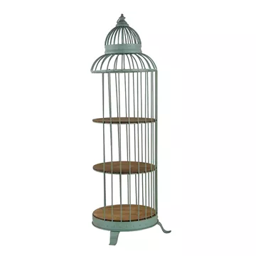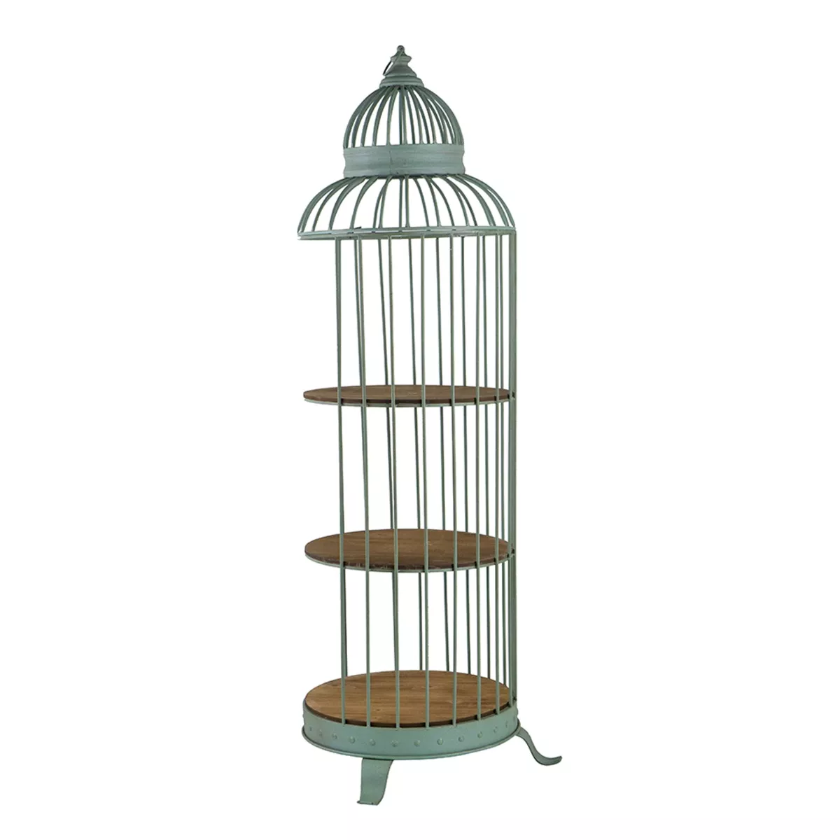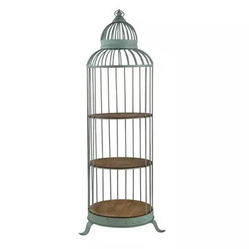 Artekko Birdcage Ραφιέρα Κλουβί με 3 Ξύλινα MDF Ράφια και Μεταλλικό Σκελετό σε Πράσινη Πατίνα (66x61x169)