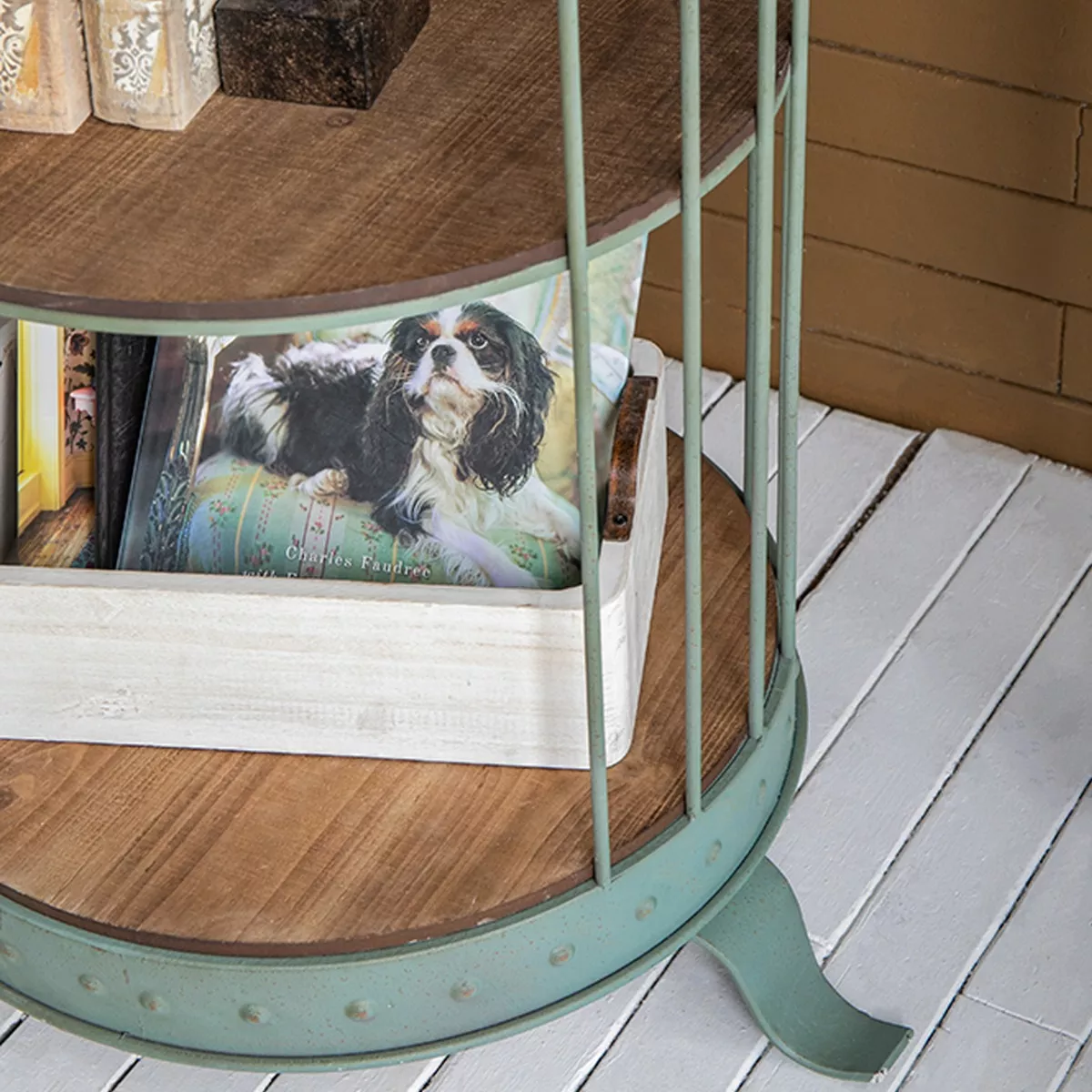 Ραφιέρα Κλουβί με 3 Ξύλινα MDF Ράφια και Μεταλλικό Σκελετό σε Πράσινη Πατίνα