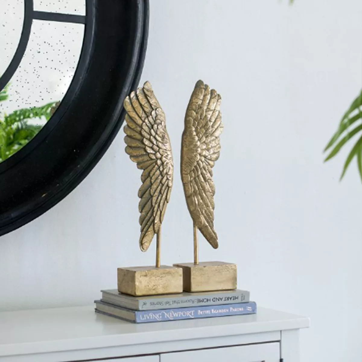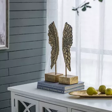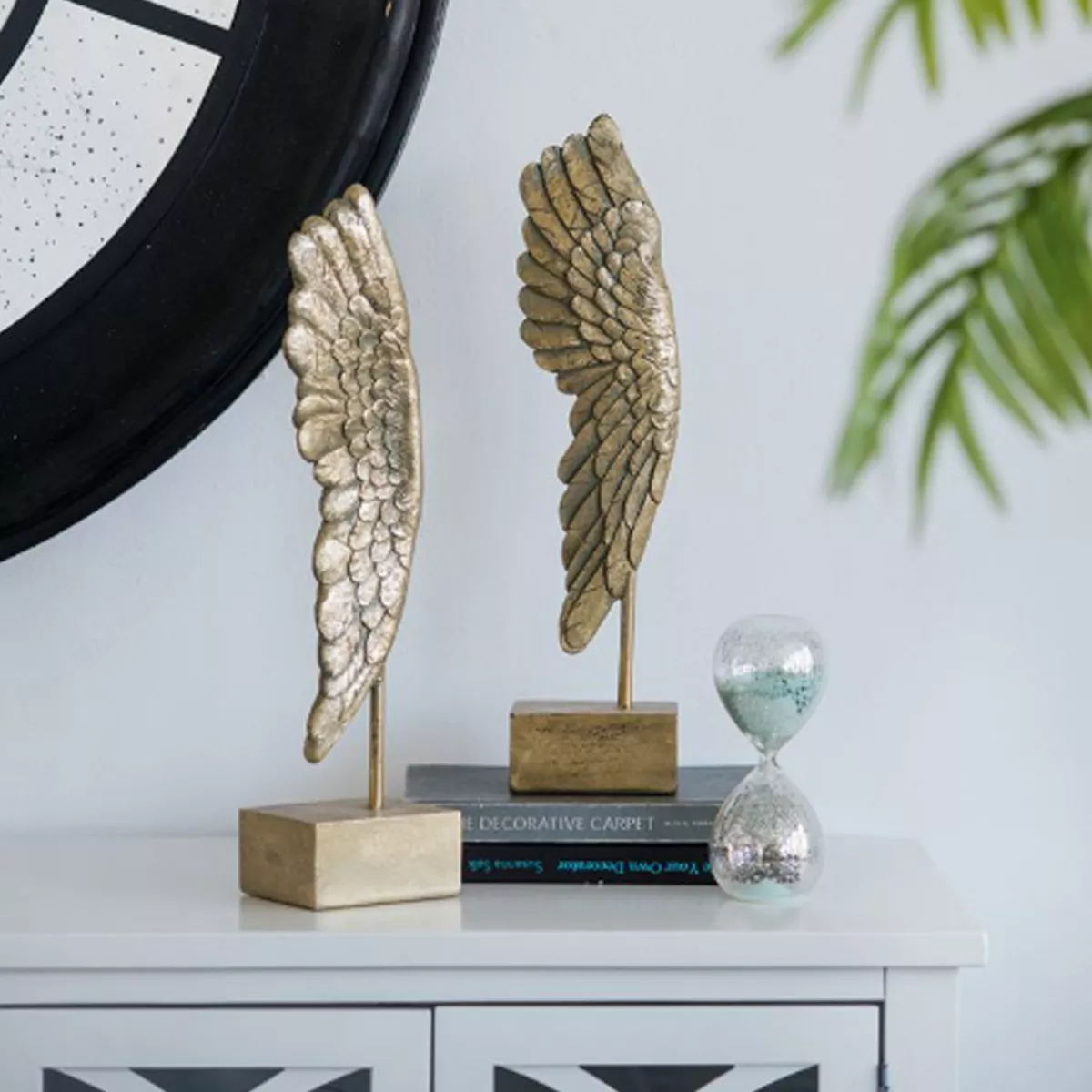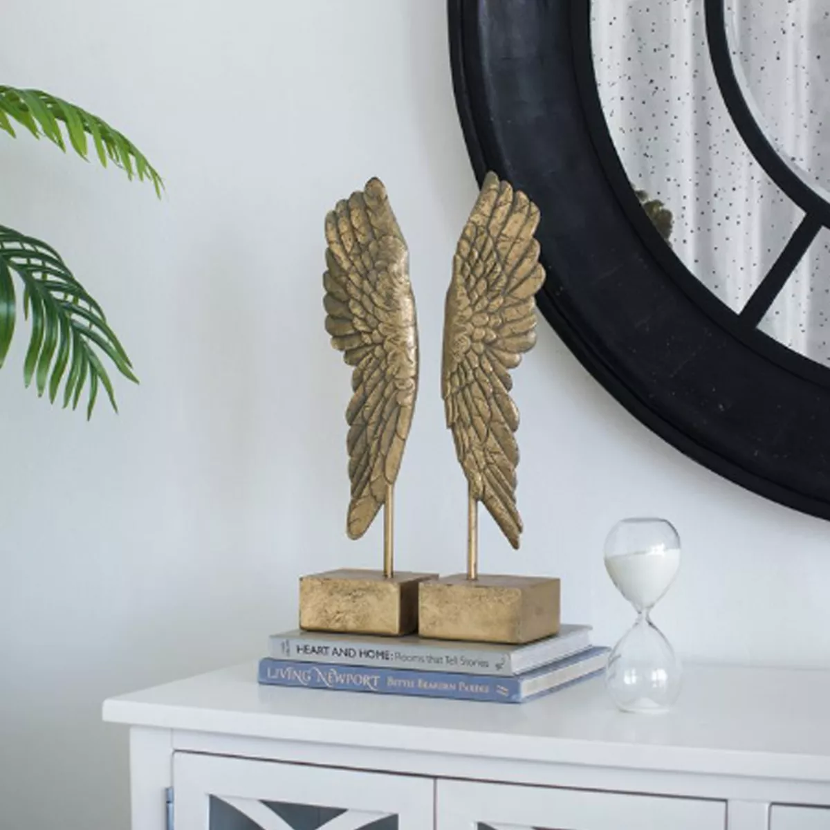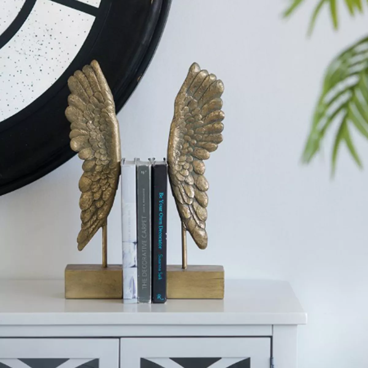 Wing Βιβλιοστάτες Φτερά Ρητίνη Χρυσά Σετ/2