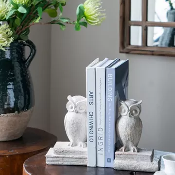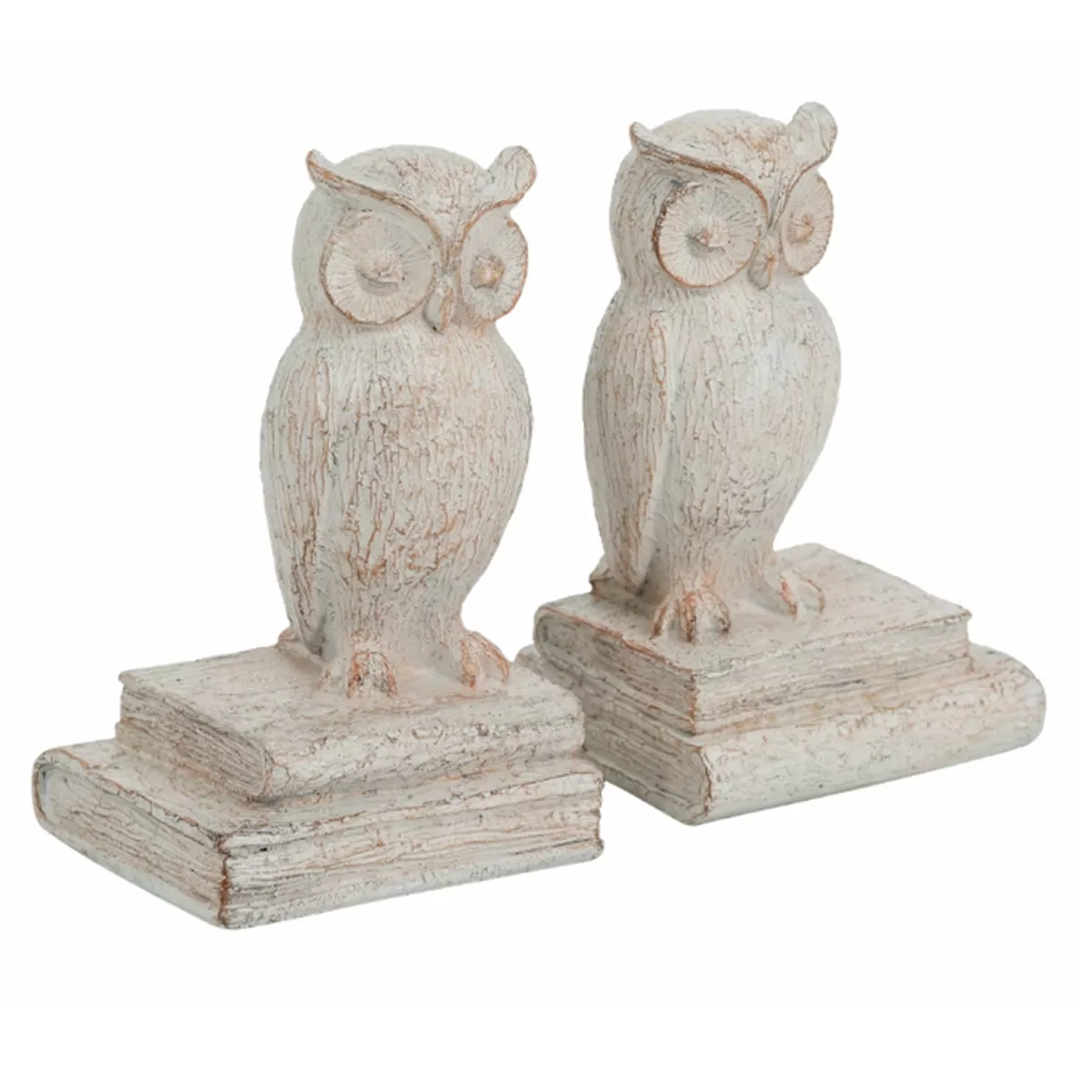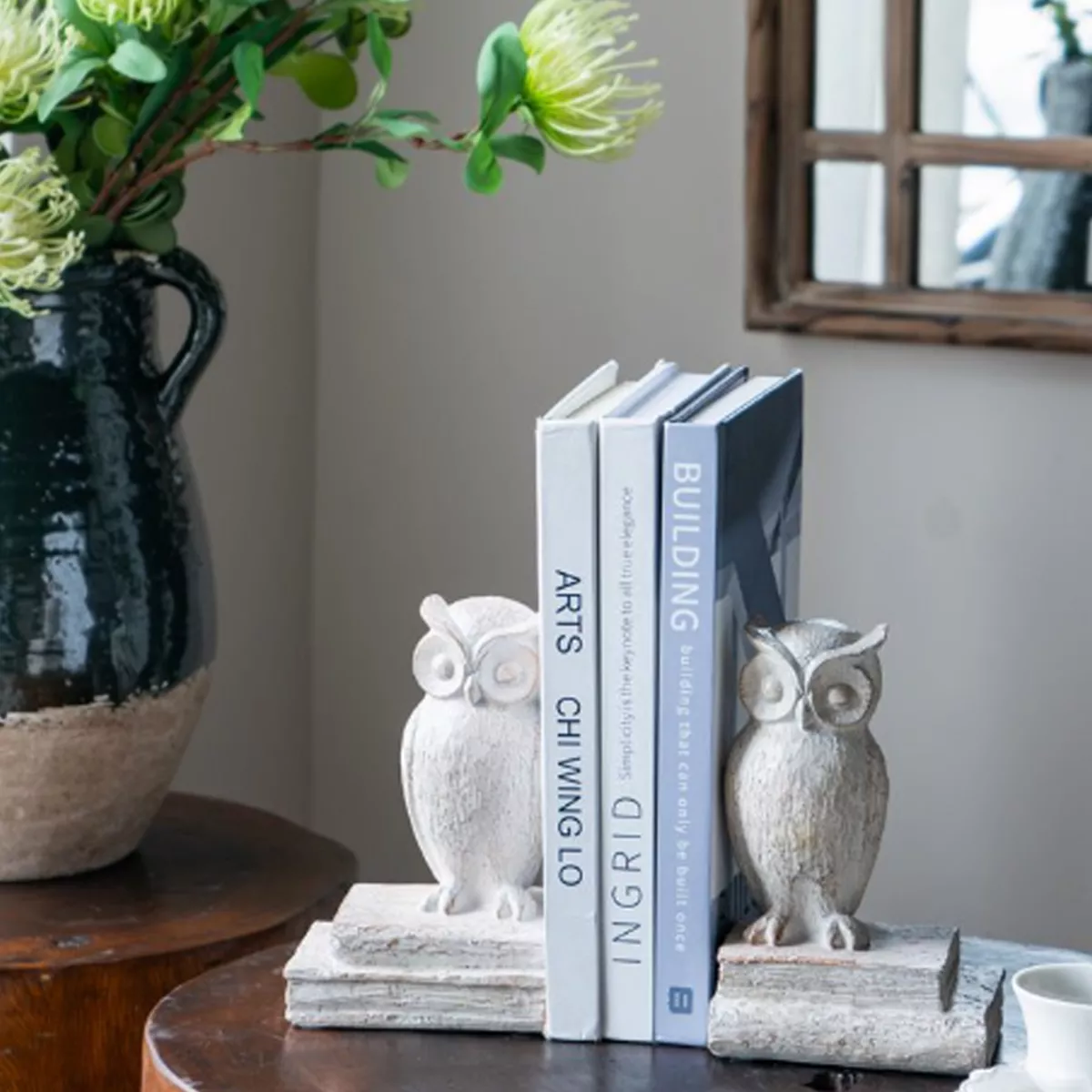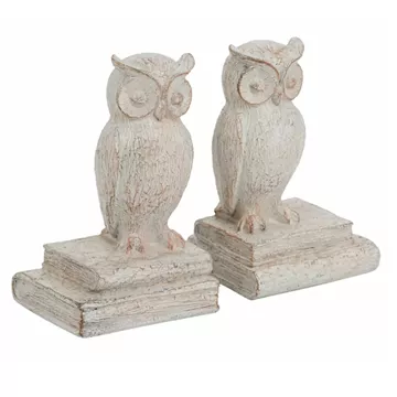 Βιβλιοστάτες Ρητίνης με Κουκουβάγιες σε Λευκή Πατίνα 2pcs