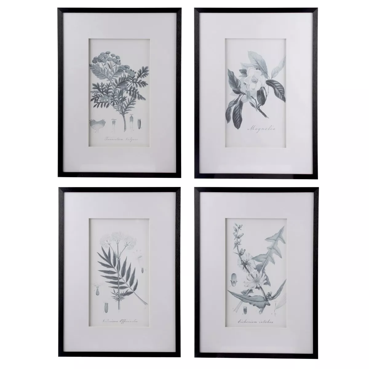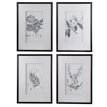 Botanical Πίνακας με Κορνίζα Πλαστικό Γυαλί Μαύρο Λευκό Σετ/4