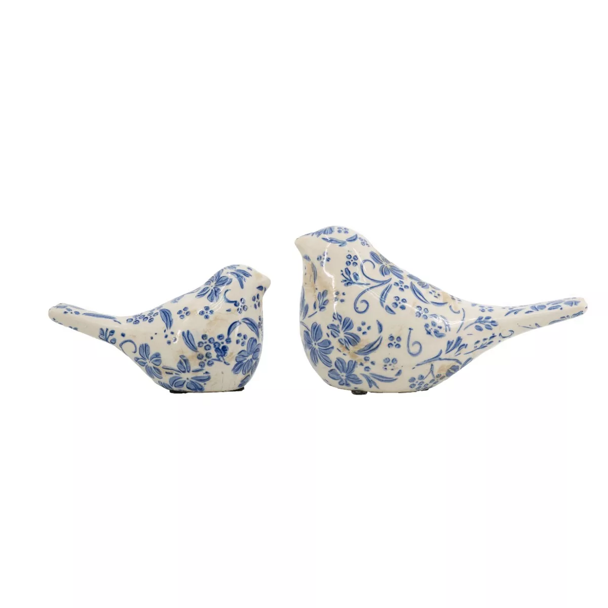 Διακοσμητικά Κεραμικά Πουλιά σε Άσπρο και Μπλε 2pcs