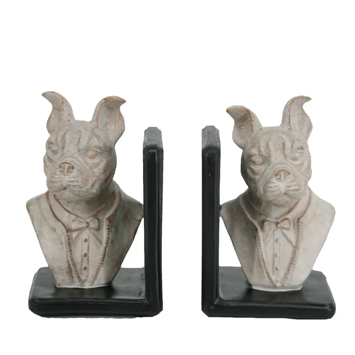 Artekkol Bookends Βιβλιοστάτες Ρητίνης με Σκυλιά σε Λευκή Πατίνα (12x10.5x19)cm 2pcs