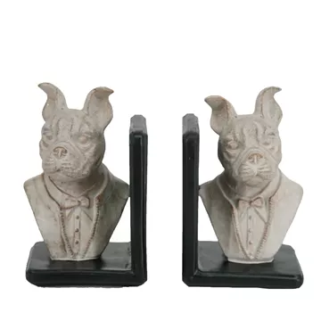 Βιβλιοστάτες Ρητίνης με Σκυλιά σε Λευκή Πατίνα 2pcs