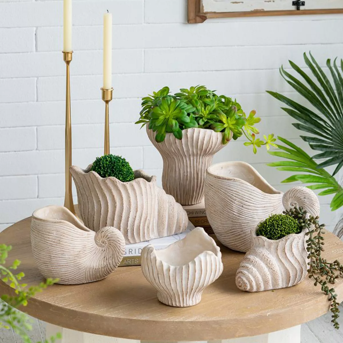 Μπεζ Τσιμεντένιο Διακοσμητικό Δοχείο Κασπώ