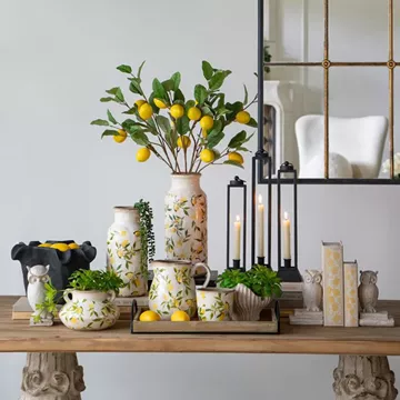Artekko Lemon Λευκά Κεραμικά Κασπώ με Λεμόνια (16x16x15.5)cm 2pcs