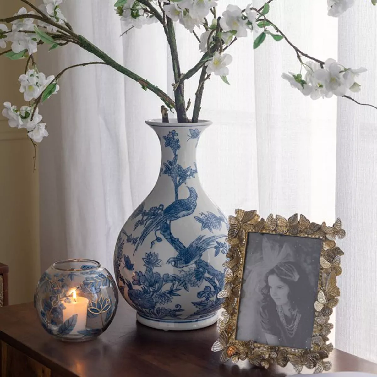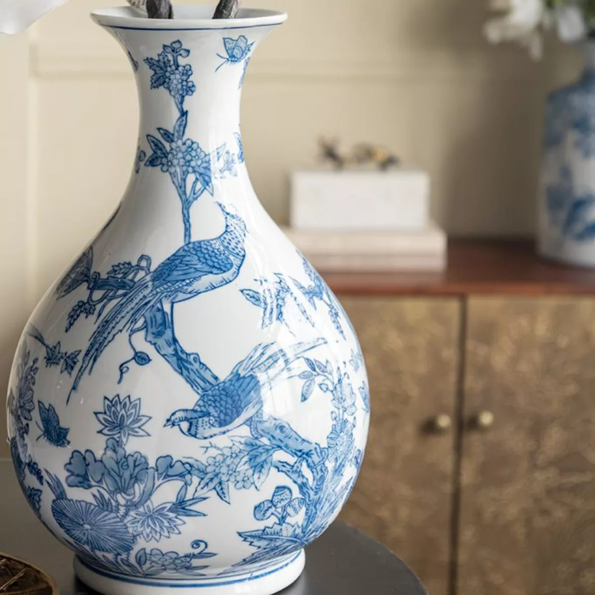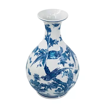 Διακοσμητικό Βάζο Πορσελάνης σε Άσπρο με Μπλε