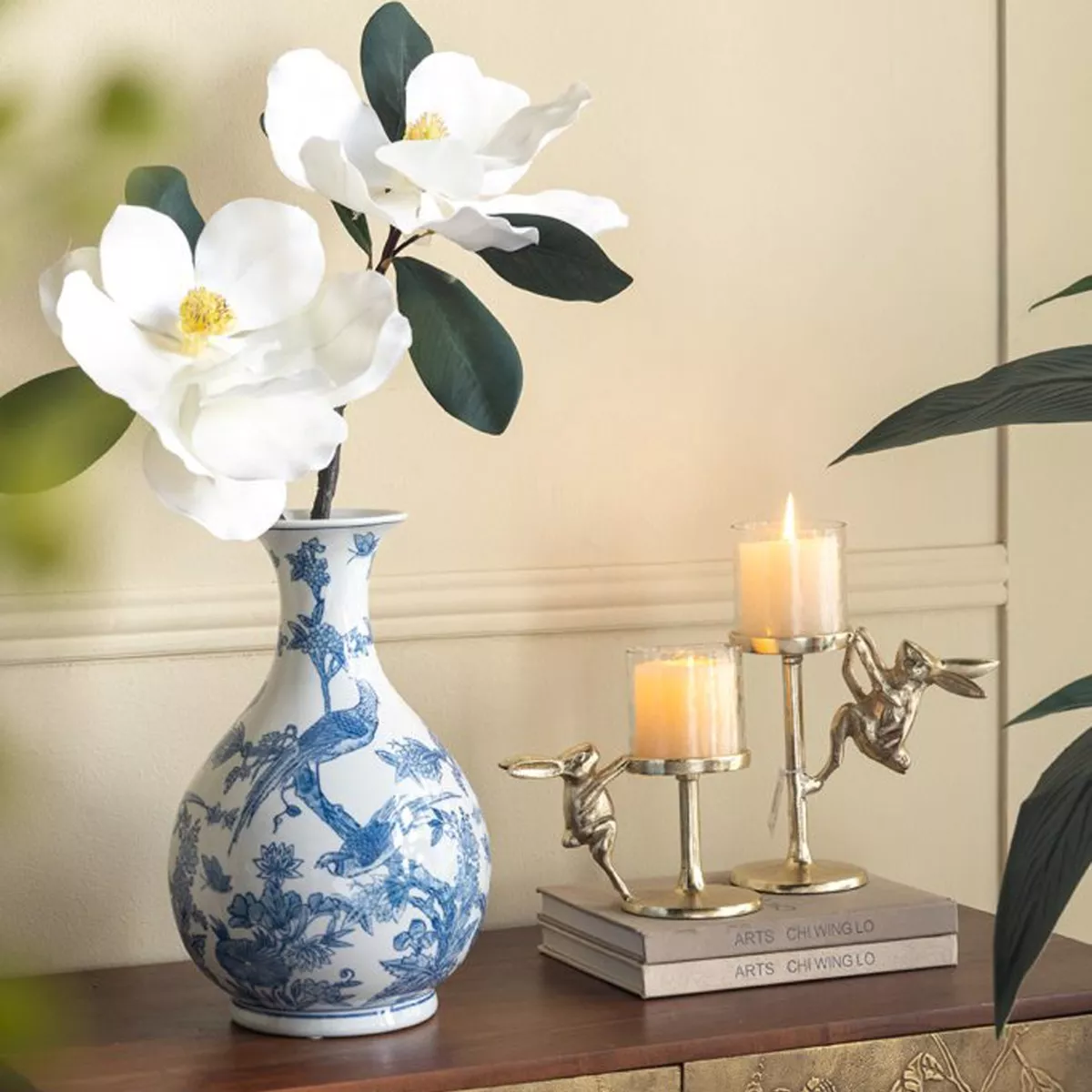 Artekko Melania Διακοσμητικό Βάζο Πορσελάνης σε Άσπρο με Μπλε (22x22x36)cm