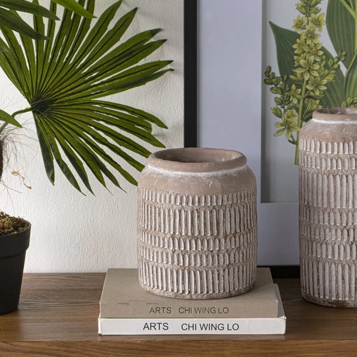Artekko Cement Μπεζ Τσιμεντένιο Βάζο (18x18x20)cm