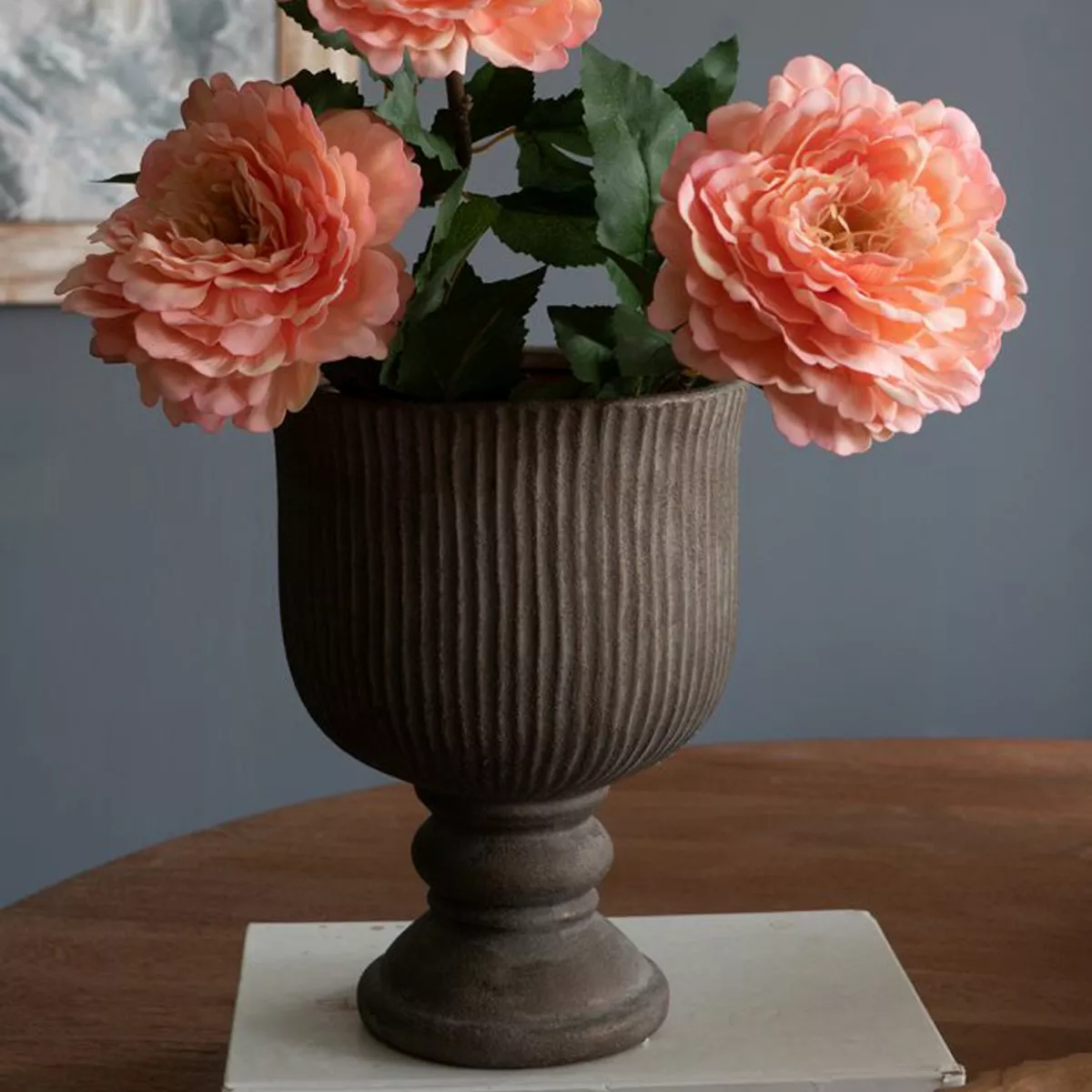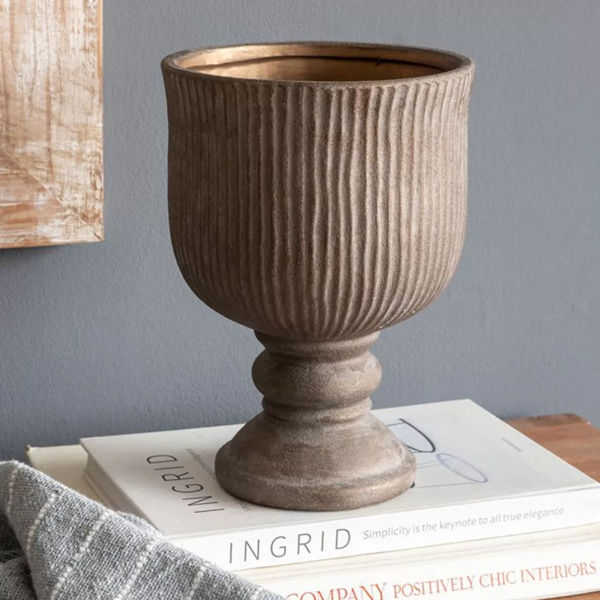 Καφέ Βάζο από Τερακότα με Μπρονζέ Φινίρισμα