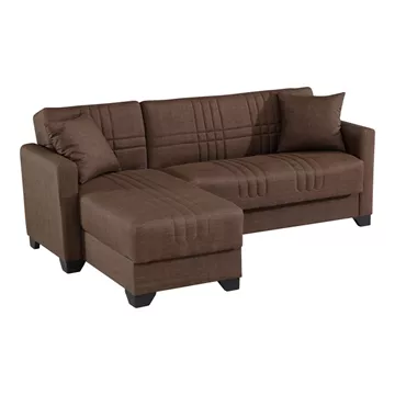 - Φέρει εύχρηστο μηχανισμό που με μία μόνο κίνηση ανασηκώνεται, μετατρέποντας τον καναπέ σε κρεβάτι και το αντίστροφο.