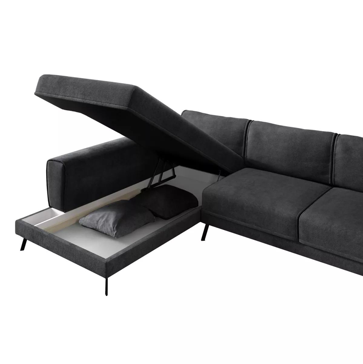 Ο καναπές-κρεβάτι ZENORA με αριστερή γωνία και αποθηκευτικό χώρο αποτελεί μια σύγχρονη και κομψή επιλογή για το καθιστικό, συνδυάζοντας άνεση, εργονομία και minimal αισθητική. Η καθαρή γραμμή σχεδίασης και το σκούρο ΓΚΡΙ ύφασμα τον καθιστούν ιδανικό για μοντέρνους αλλά και διαχρονικούς χώρους.