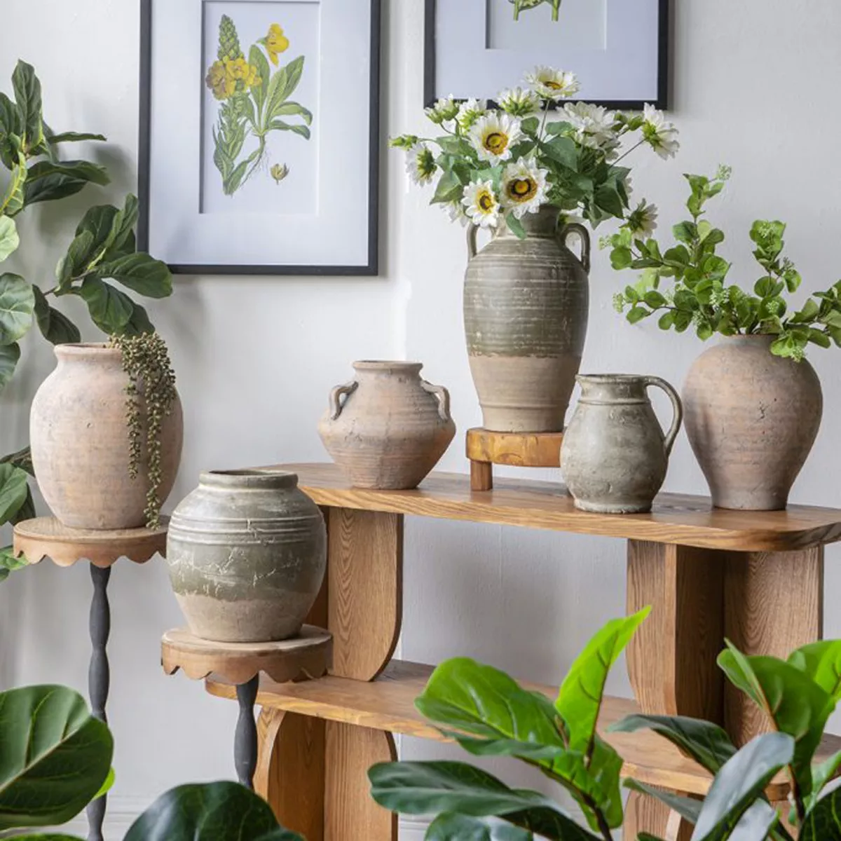 Artekko Antique Βάζο από Τερακότα σε Πράσινη με Μπεζ Αποχρώση (25x25x22.5)cm