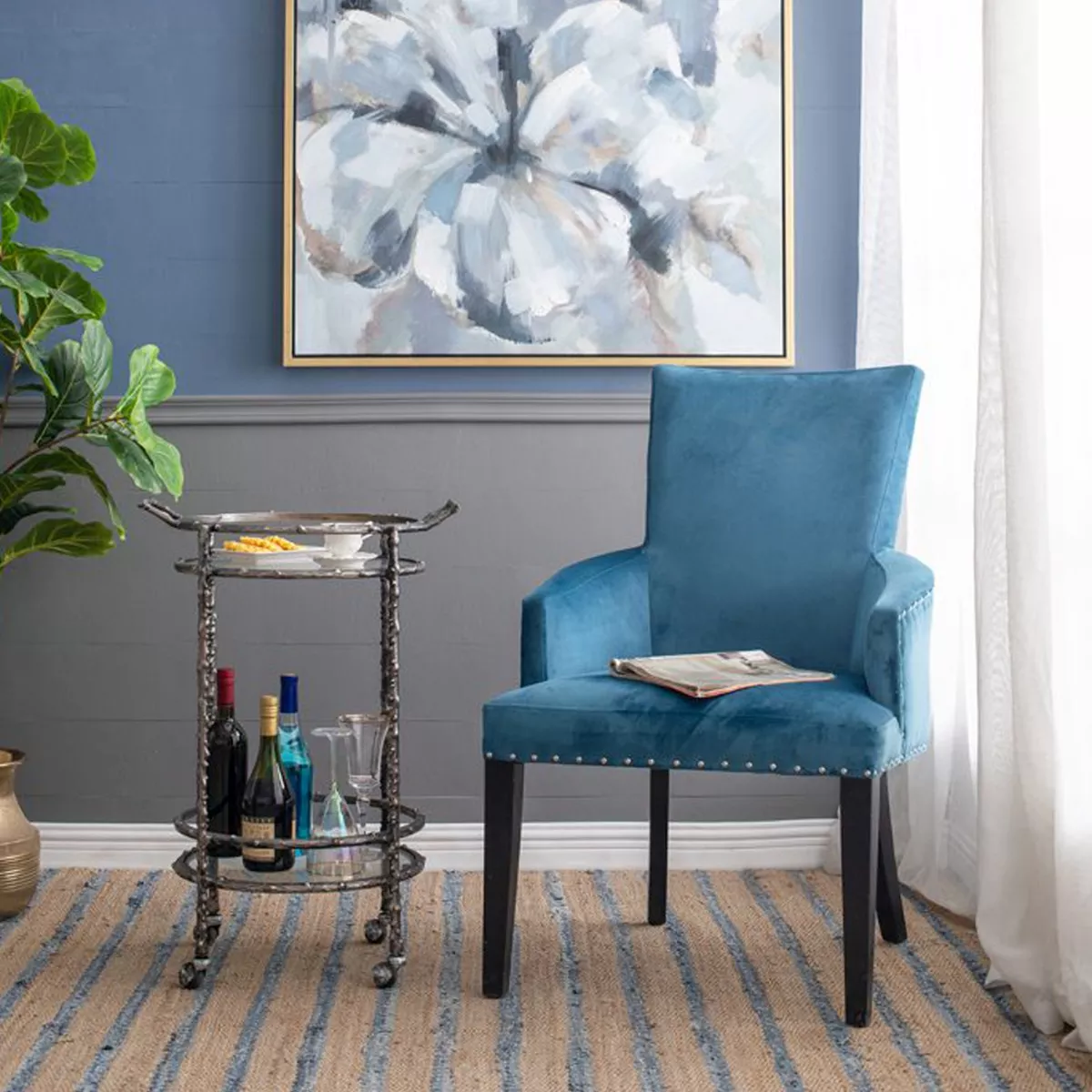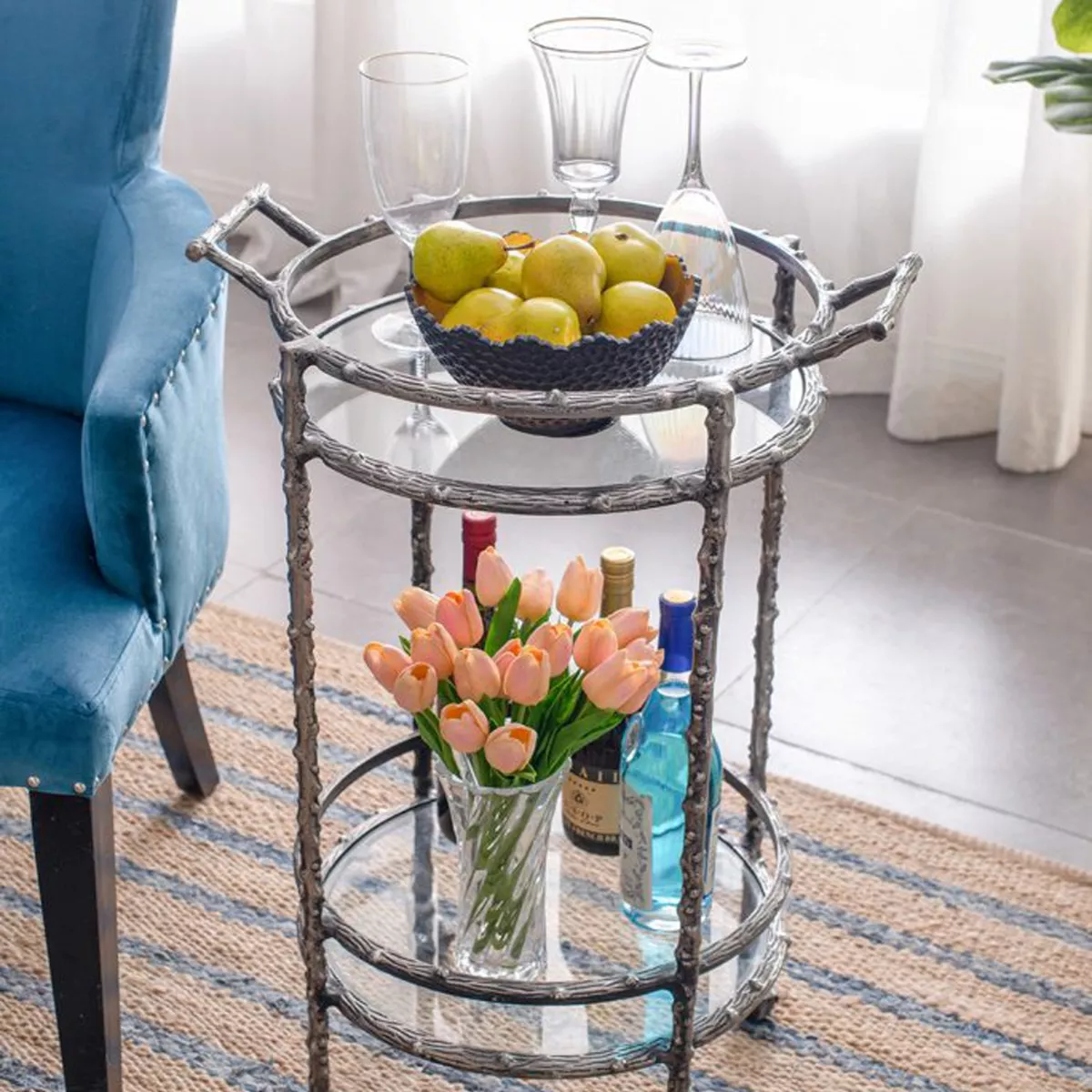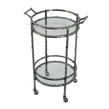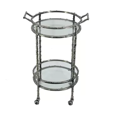 Ασημί Μεταλλικό Βοηθητικό Τρόλεϊ Μπαρ με 2 Επίπεδα