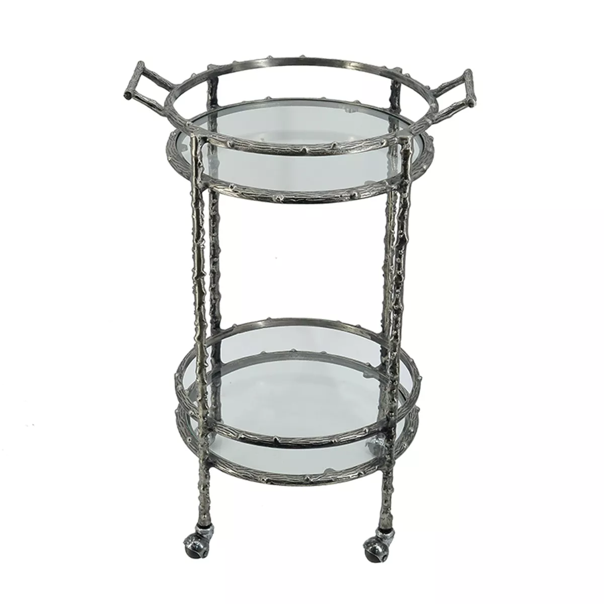 Artekko Cart Twig Ασημί Μεταλλικό Βοηθητικό Τρόλεϊ Μπαρ με 2 Επίπεδα (41x51x76)cm