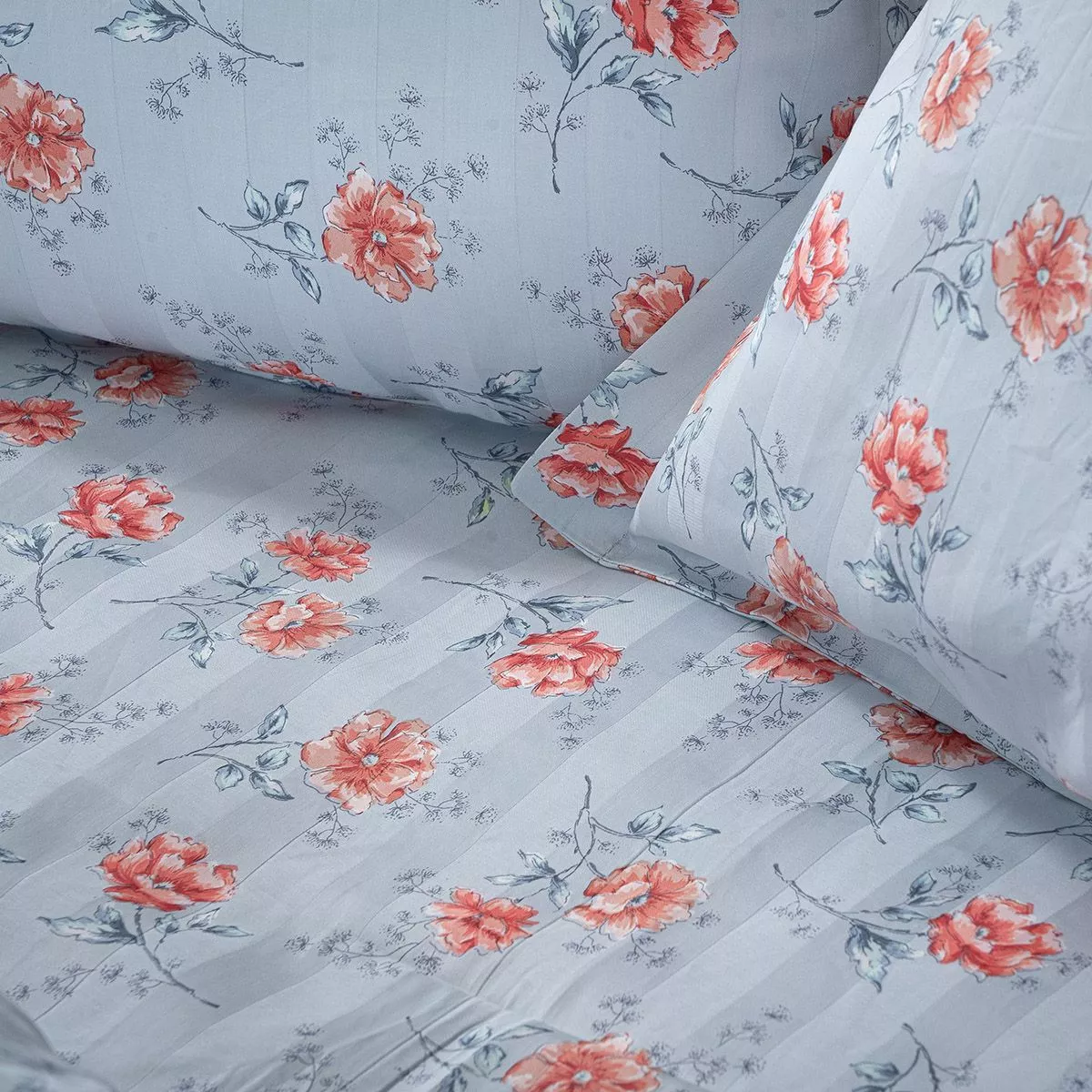 Beauty Home Σετ σεντόνια υπέρδιπλα με λάστιχο Art 12219 Ivy 100% Βαμβακοσατέν 300tc 170x200+30 Γκρι