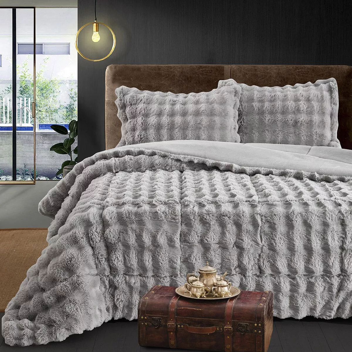Γούνινο Κουβερτοπάπλωμα Jacquard Pop Rabbit Fur – Beauty Home Αναβαθμίστε την άνεση και την αισθητική του υπνοδωματίου σας με τα νέα γούνινα κουβερτοπαπλώματα Beauty Home. Με απαλή υφή που θυμίζει φυσική γούνα, προσφέρουν υπέρτατη θαλπωρή και πολυτέλεια τις κρύες νύχτες του χειμώνα. • Πάνω όψη: 400 GSM Jacquard Pop Rabbit Fur – εξαιρετικά απαλό και πολυτελές, με εμφάνιση που μιμείται φυσική γούνα. • Γέμιση: 250 GSM Polyfill – χαρίζει αφράτη αίσθηση και ιδανική θερμομόνωση. • Κάτω όψη: 180 GSM Solid Flannel – λείο, απαλό και ευχάριστο στην επαφή με το δέρμα. Χαρακτηριστικά: • Πολυτελής εμφάνιση με αίσθηση «γούνινης αγκαλιάς». • Ιδανικό για τις κρύες νύχτες του χειμώνα. • Εξαιρετικά απαλό και αφράτο. • Ανθεκτικό στη χρήση και στο πλύσιμο. • Διατίθεται σε κομψά χρώματα για κάθε στυλ υπνοδωματίου. Σύνθεση: 100% Polyester (Rabbit Fur + Polyfill + Flannel) Διάσταση: King size 240x260 Με τα γούνινα κουβερτοπαπλώματα Beauty Home, η θαλπωρή συναντά την πολυτέλεια!
