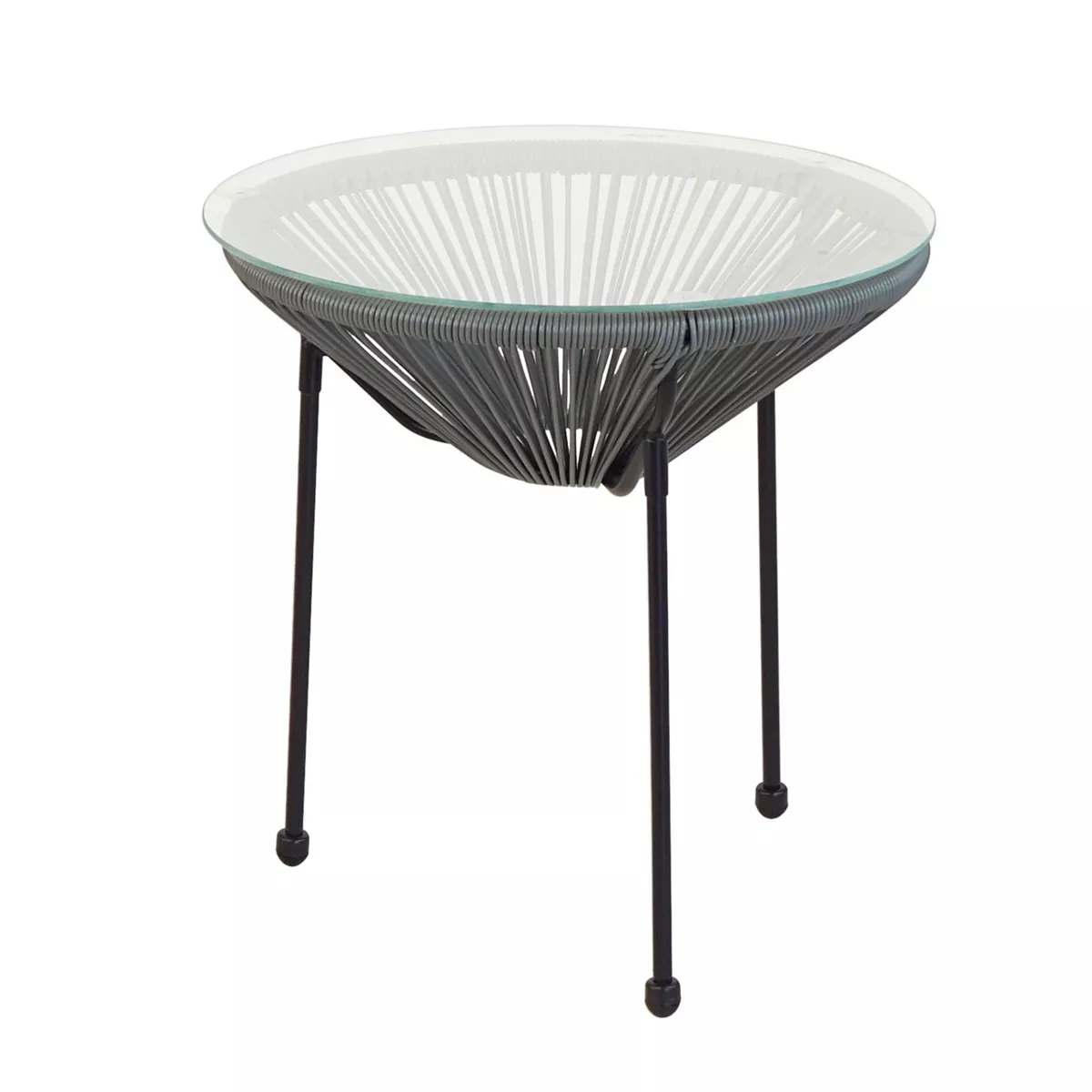 ACAPULCO Τραπεζάκι Μέταλλο Βαφή Μαύρο, Plastic Rattan Γκρι