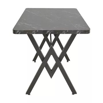 Ενσωματώστε το industrial chic στη διακόσμηση του χώρου σας με το εντυπωσιακό τραπέζι Vertex. Συνδυάζοντας την αυθεντική κομψότητα του εφέ μαρμάρου με την τολμηρή, γεωμετρική αισθητική του μαύρου μετάλλου, δημιουργεί ένα μοναδικό σημείο συνάντησης, ιδανικό για καθημερινά γεύματα και φιλοξενία.