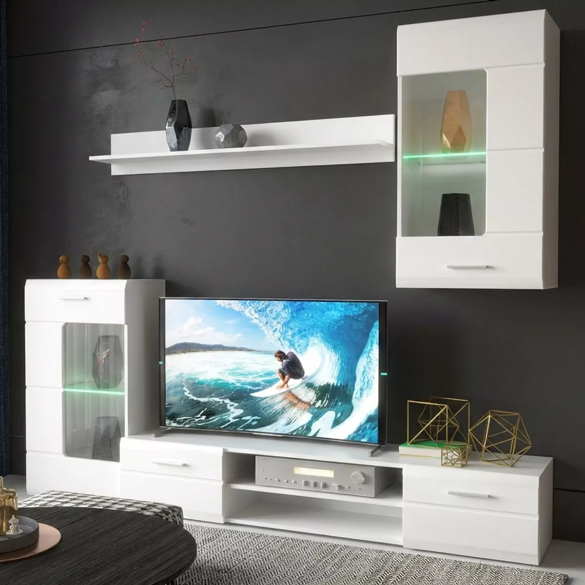 Αναβαθμίστε το σαλόνι σας με τη σύνθεση τηλεόρασης Saleto, έναν αρμονικό συνδυασμό minimal σχεδιασμού και πρακτικής αποθήκευσης. Σχεδιασμένη για το σύγχρονο σπίτι, αυτή η σύνθεση μετατρέπει τον τοίχο της τηλεόρασης σε ένα κομψό και οργανωμένο κέντρο ψυχαγωγίας.