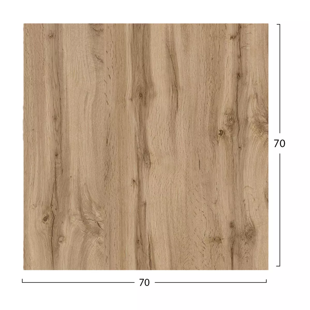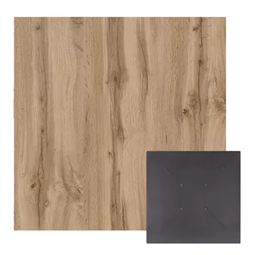 Τετράγωνη επιφάνεια τραπεζιού με όψη ξύλου ΔΡΥΟΣ, η οποία είναι κατάλληλη για επαφή με τρόφιμα και γενικά το υλικό είναι φιλικό προς το περιβάλλον. Μπορεί να χρησιμοποιηθεί σε πληθώρα χώρων όπως καφετέριες, εστιατόρια, και τουριστικά καταλύματα, είτε σε εσωτερικούς, είτε σε εξωτερικούς χώρους.