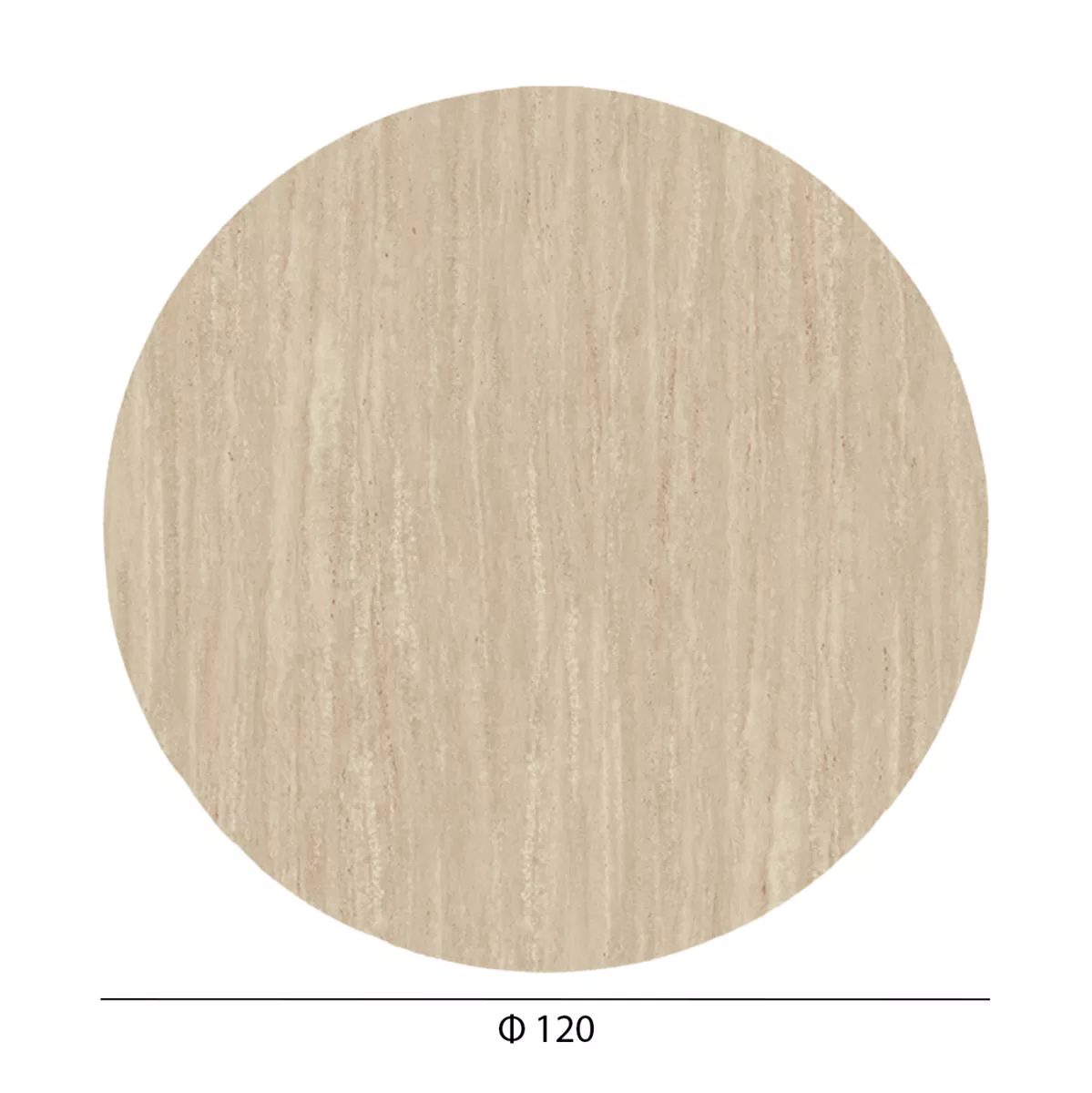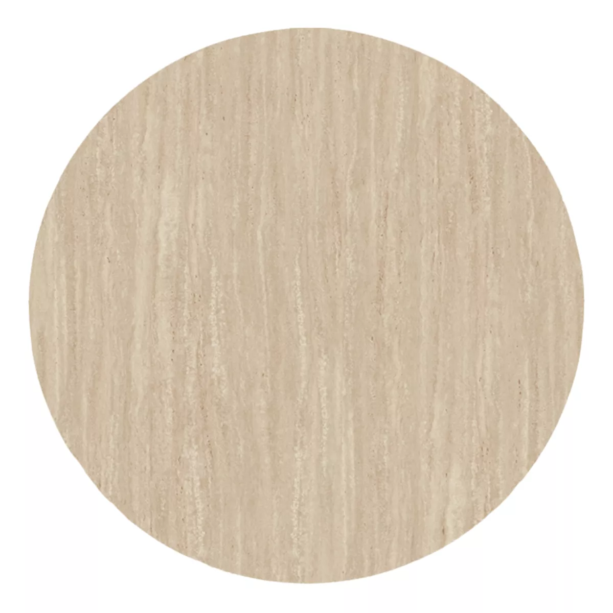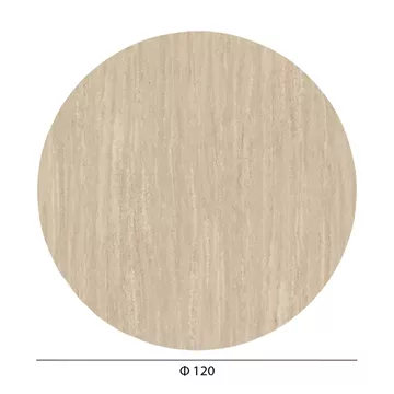 Στρογγυλή φαλτσοκομμένη επιφάνεια τραπεζιού σε χρώμα πέτρας ΤΡΑΒΕΡΤΙΝΑΣ, η οποία είναι κατάλληλη για επαφή με τρόφιμα και γενικά το υλικό είναι φιλικό προς το περιβάλλον. Μπορεί να χρησιμοποιηθεί σε πληθώρα χώρων όπως καφετέριες, εστιατόρια, και τουριστικά καταλύματα, είτε σε εσωτερικούς, είτε σε εξωτερικούς χώρους.