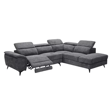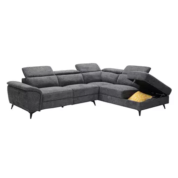 ROMEO Καναπές-Relax, Αριστερή Γωνία,Ύφασμα Γκρι, Αποθ.χώρος, Μία θέση με ηλεκτρική ανάκληση