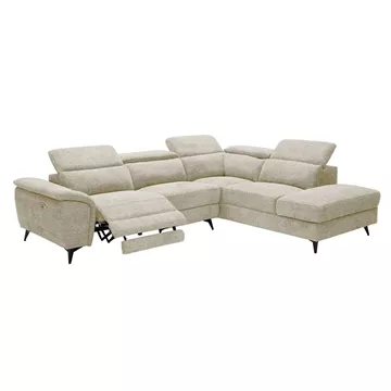 ROMEO Καναπές-Relax, Αριστερή Γωνία,Ύφασμα Μπεζ, Αποθ.χώρος, Μία θέση με ηλεκτρική ανάκληση