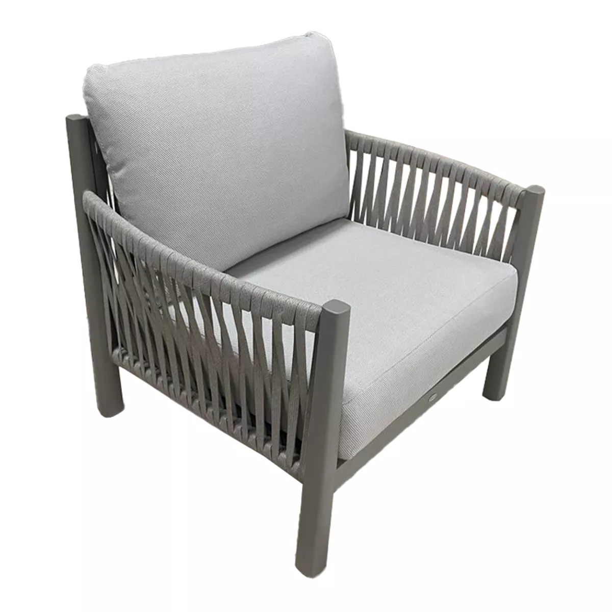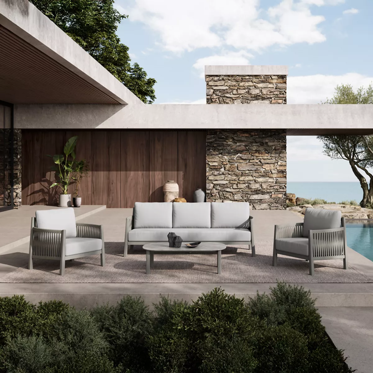Φέρτε την κομψότητα και την άνεση στον χώρο σας με το εκπληκτικό σετ σαλονιού Feralda. Κατασκευασμένο με γνώμονα την αντοχή στις εξωτερικές συνθήκες, το πλαίσιο από ανθεκτικό υλικό σε συνδυασμό με την πλέξη του πολυεστερικού σχοινιού δίνει μια μοντέρνα και διαχρονική αισθητική. Είτε ψάχνετε για ένα μέρος να χαλαρώσετε με ένα βιβλίο είτε να διασκεδάσετε φίλους και οικογένεια, το Feralda είναι η τέλεια προσθήκη στον κήπο, την βεράντα ή το αίθριό σας.