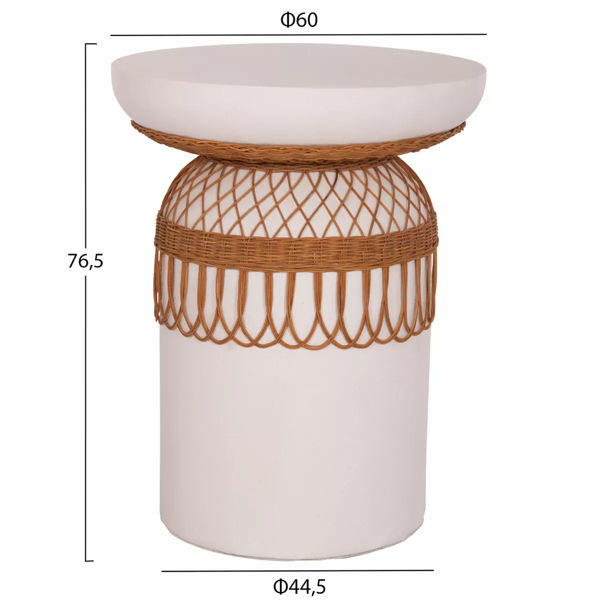 Το χειροποίητο ψηλό βοηθητικό τραπέζι PRILEP αποτελεί σημείο αναφοράς σε κάθε χώρο με το όμορφο design του αλλά και την πολύ ιδιαίτερη διακόσμησή του με φυσικό rattan. Είναι κατασκευασμένο εξολοκλήρου από Fiber Cement σε ΛΕΥΚΟ χρώμα και ενδείκνυται τόσο για το σπίτι, όσο και για επαγγελματικούς χώρους, όπως ξενοδοχεία, AirBnB, κτλ., με αντίστοιχη αισθητική.