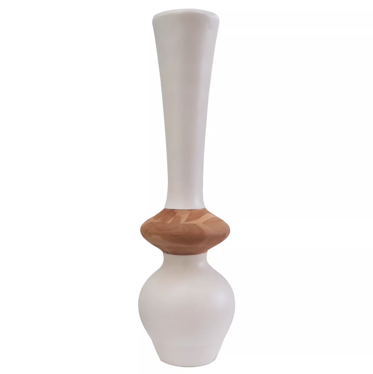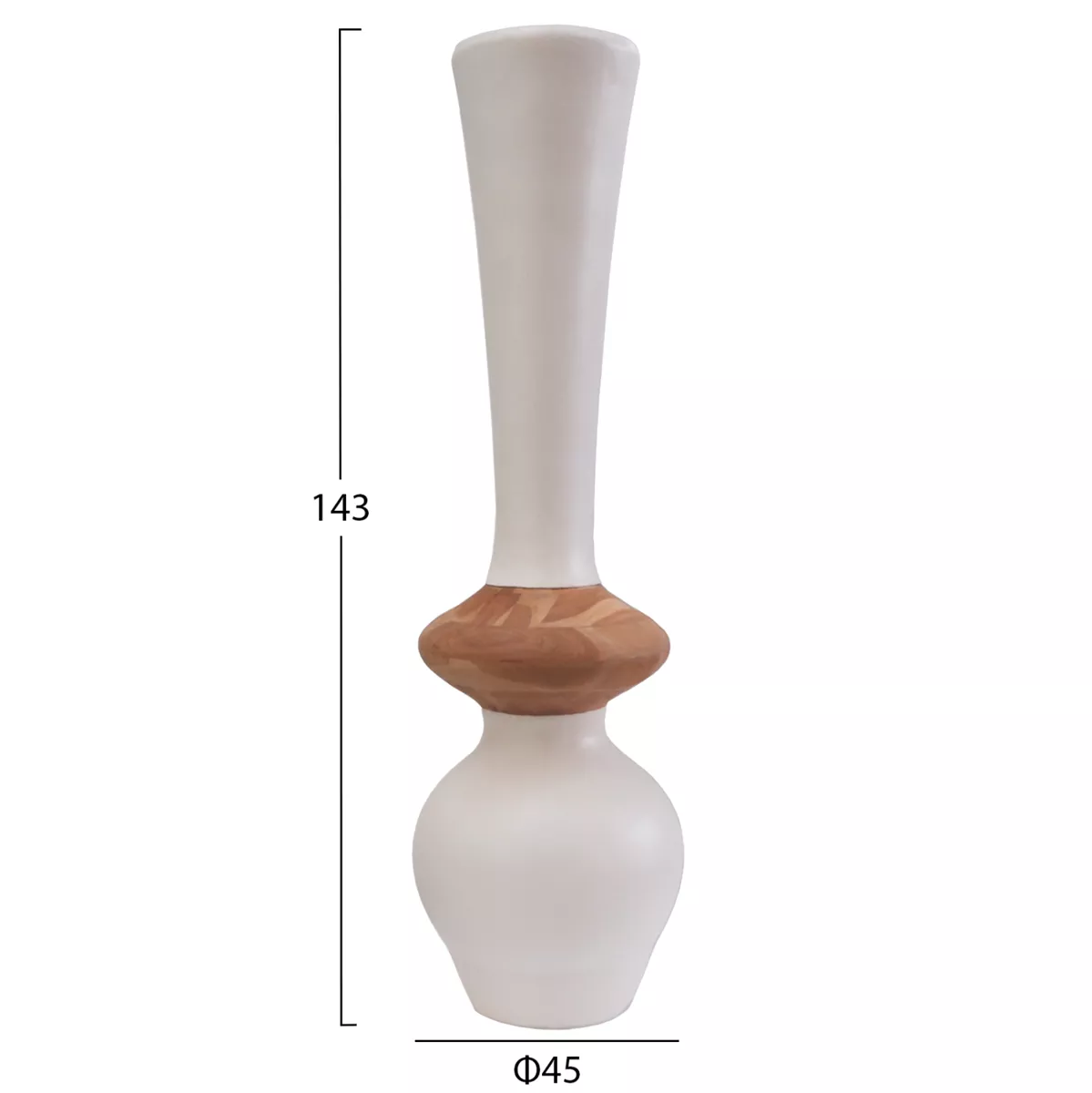 Το χειροποίητο διακοσμητικό βάζο δαπέδου NEBULA είναι ένα πολύ ιδιαίτερο διακοσμητικό στοιχείο για κάθε χώρο. Είναι κατασκευασμένο εξολοκλήρου από Fiber Cement σε ΛΕΥΚΟ χρώμα με διακόσμηση στον λαιμό από ποιοτικό ξύλο Teak, ενώ το ύψος του το καθιστά επιβλητικό στον χώρο. Ιδανικό για πληθώρα χρήσεων και χώρων.