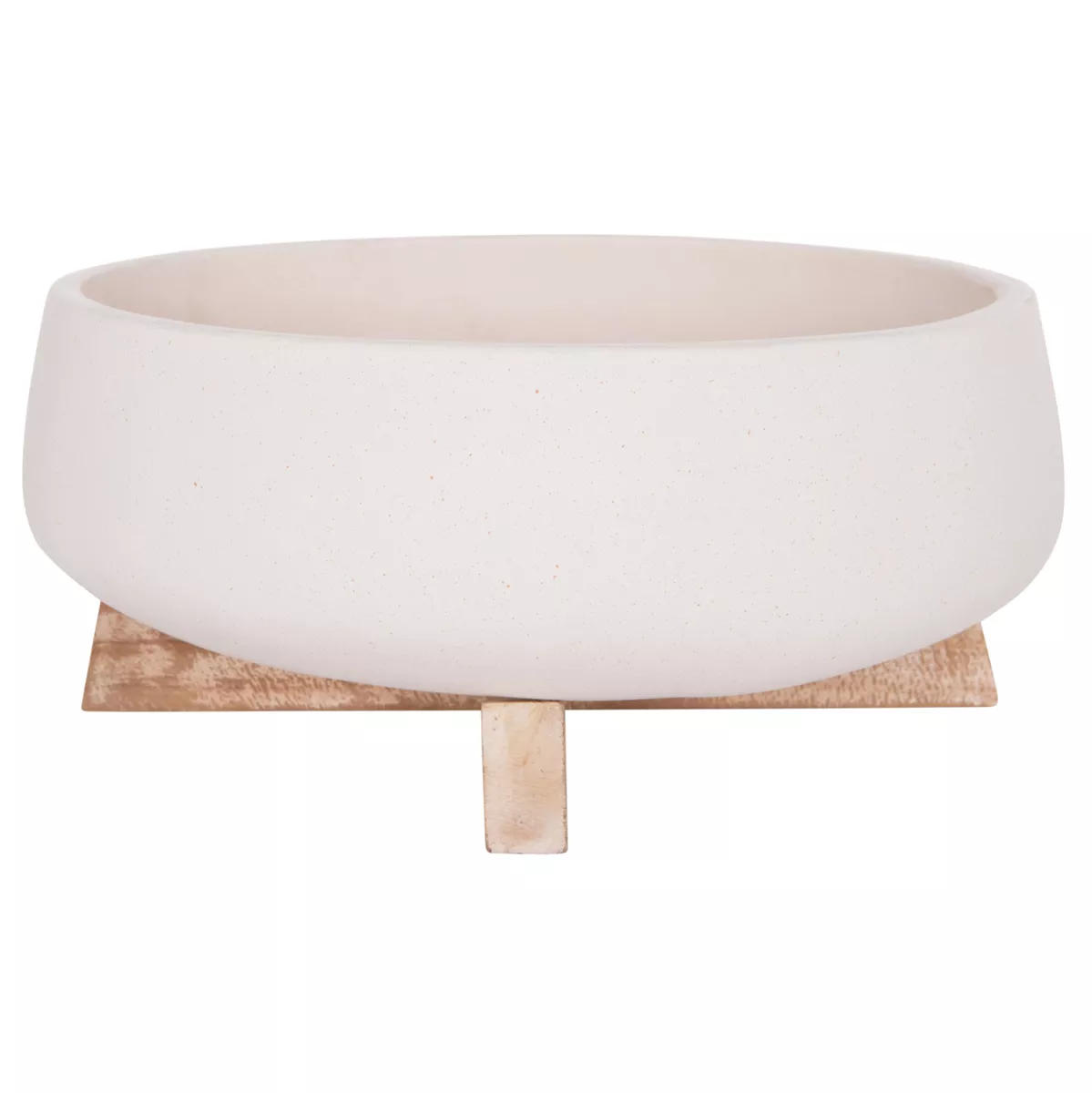 Η ρηχή γλάστρα FRELLO είναι κατασκευασμένη από Fiber Cement σε ΛΕΥΚΟ χρώμα. Το ιδιαίτερο χαρακτηριστικό της είναι ότι συνοδεύεται από όμορφη και πρακτική βάση από ξύλο teak.