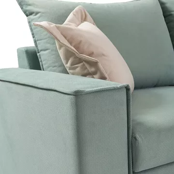 - Χρώμα καναπέ και μαξιλαριών πλάτης:Ciel. Φέρει δύο διακοσμητικά μαξιλαράκια σε Cream χρώμα.