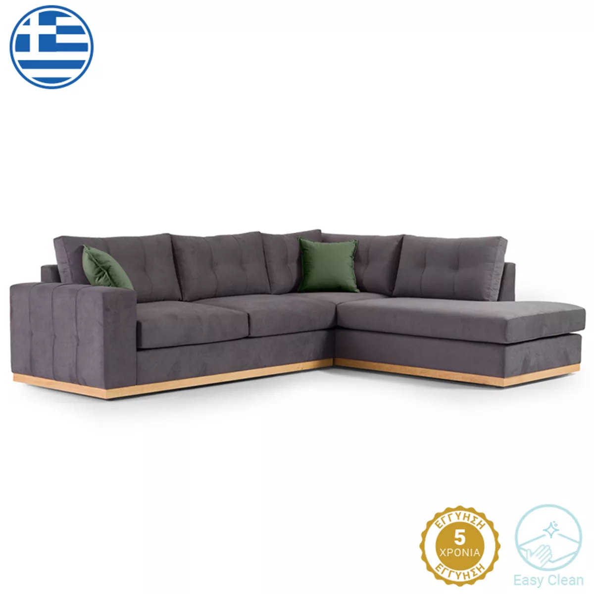 Γωνιακός καναπές αριστερή γωνία Boston pakoworld ύφασμα ανθρακί-κυπαρισσί 280x225x90εκ