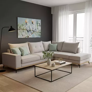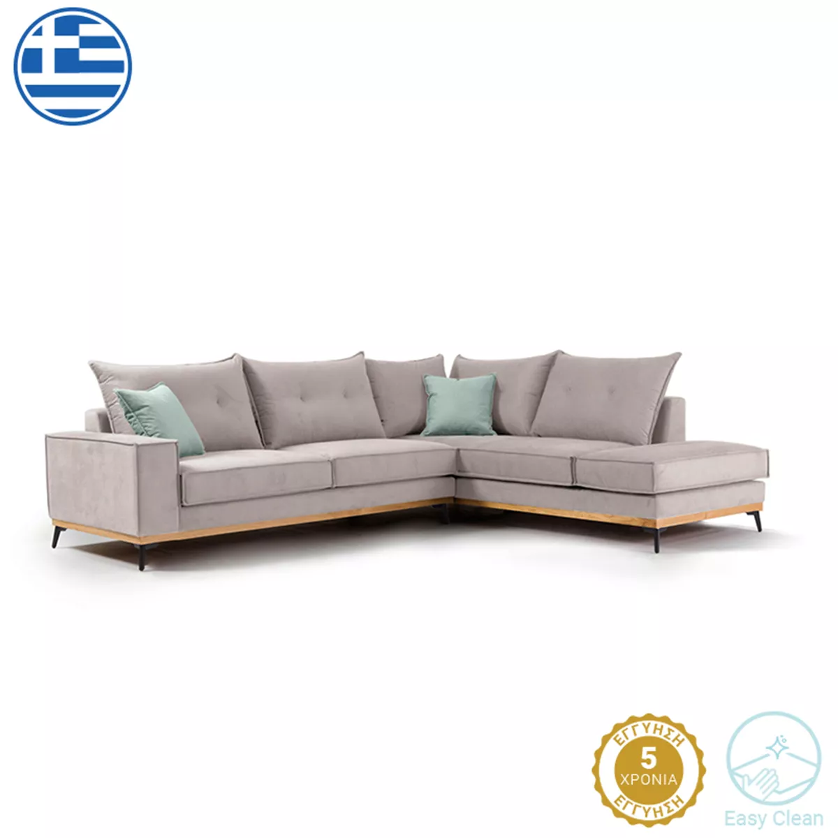 Γωνιακός καναπές αριστερή γωνία Luxury II pakoworld ύφασμα elephant-ciel 290x235x95εκ